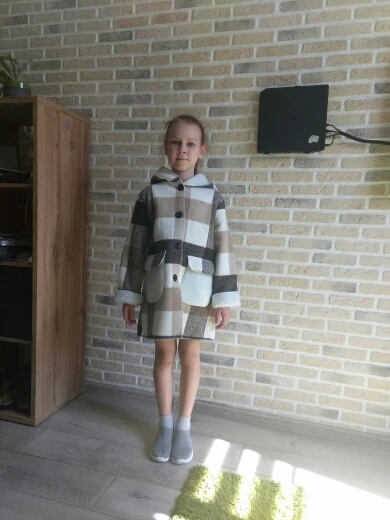 Доставка 2 недели до Тулы. Описание соответствует. На ребенка ростом 134 см нормального телосложения заказала 9Т(140). Подошло хорошо. Рукава можно даже немного подвернуть. Хватит на осень и весну точно. Прорези для пуговиц расположены довольно близко к краю. Покупкой довольны.