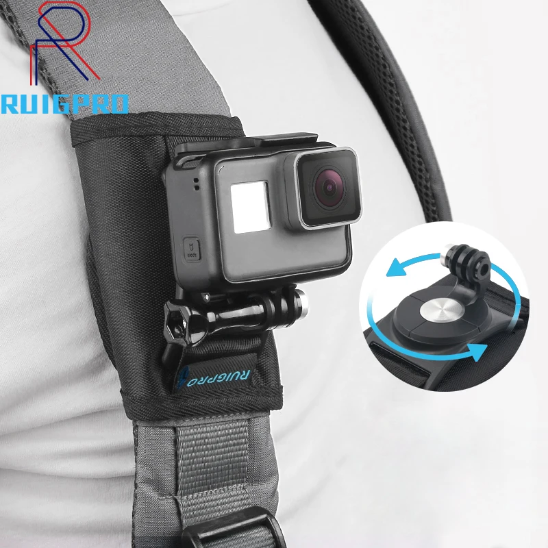 Поворотный на 360 градусов зажим для рюкзака аксессуары для Gopro Hero 10 9 8 7 6 5 Insta 360 ONE R Sjcam DJI OSMO фиксированный ремень на плечо для телефона