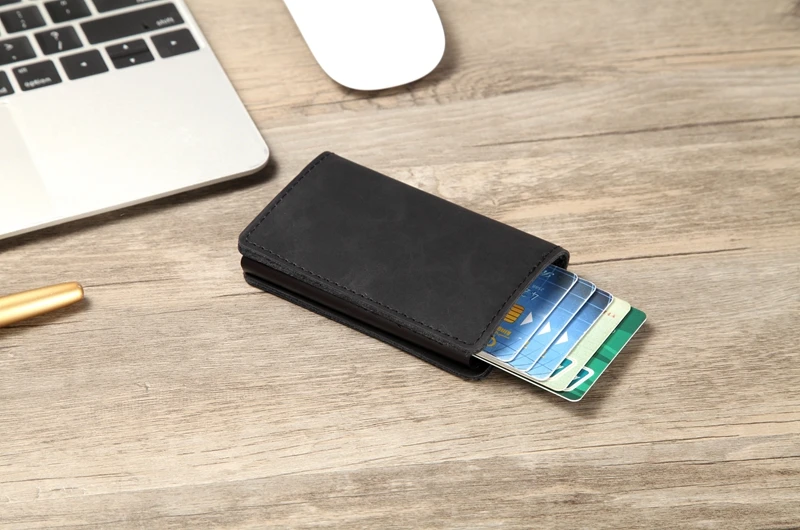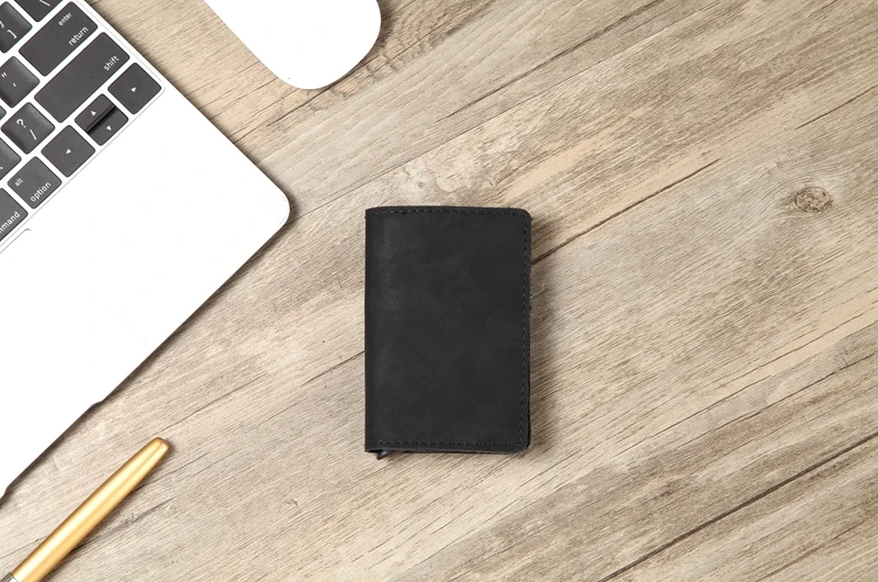 Мужской кожаный кошелек Crazy Horse с лазерной гравировкой, Алюмини...
