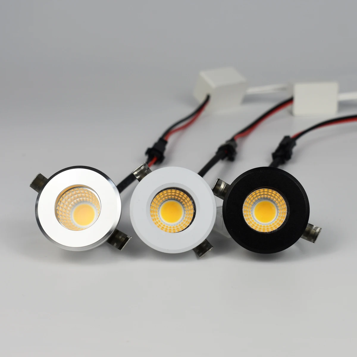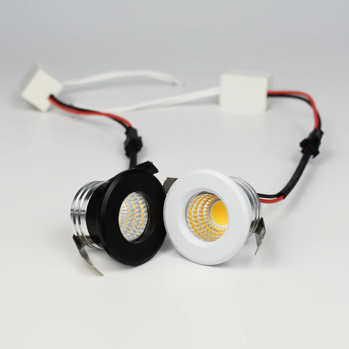 Миниатюрный светодиодный светильник COB 3 Вт, отверстие для резки 30 мм, черный, белый, серебристый корпус, 12 В переменного тока, 110 В, 220 В, пыленепроницаемый, противотуманный