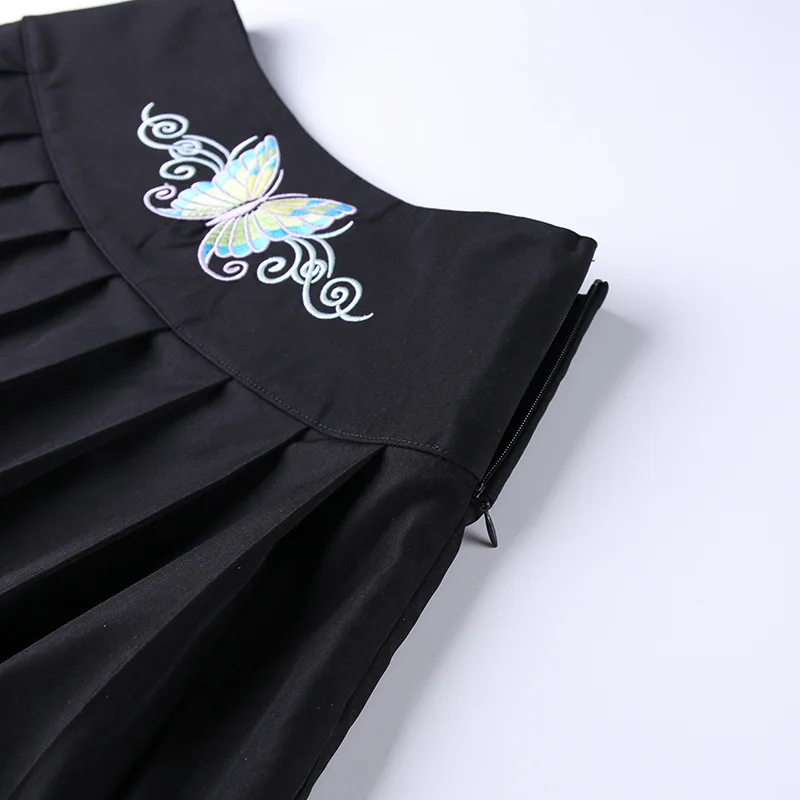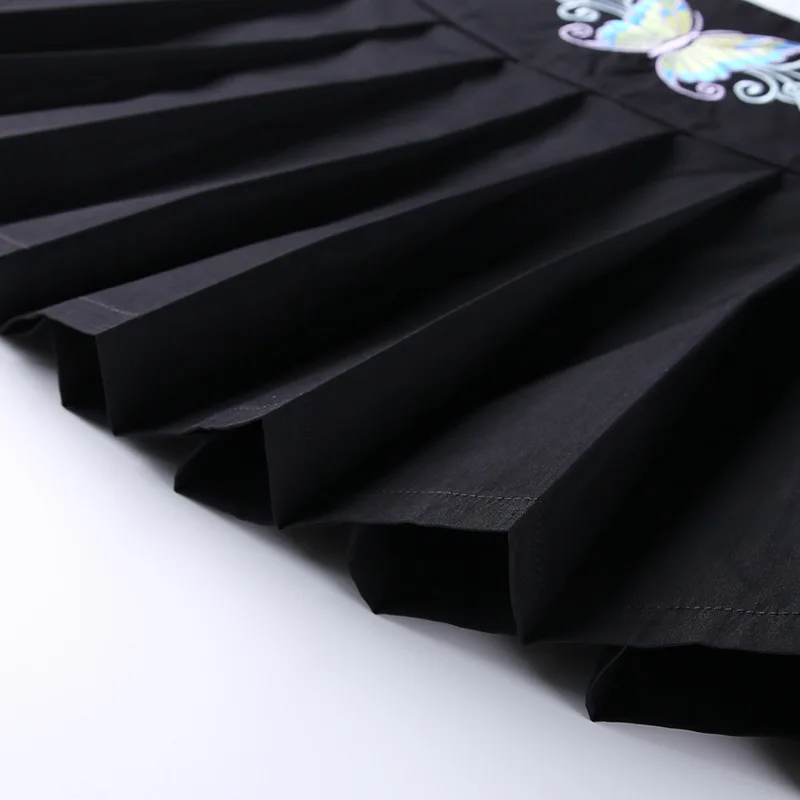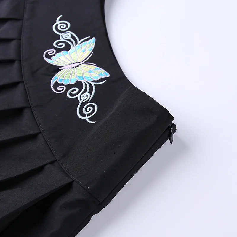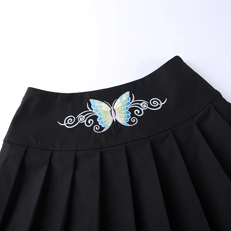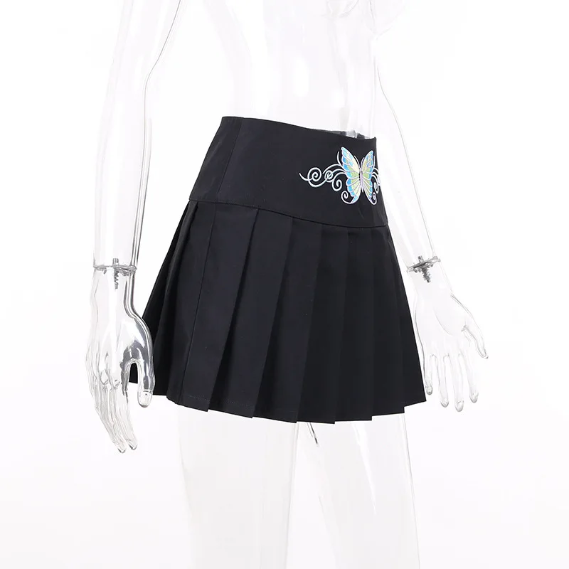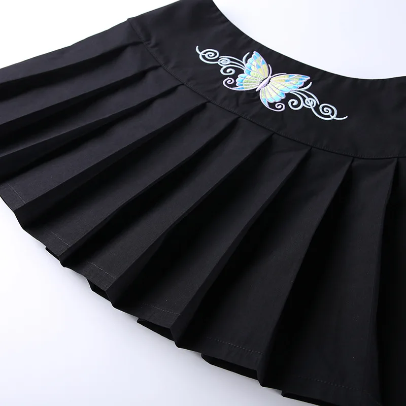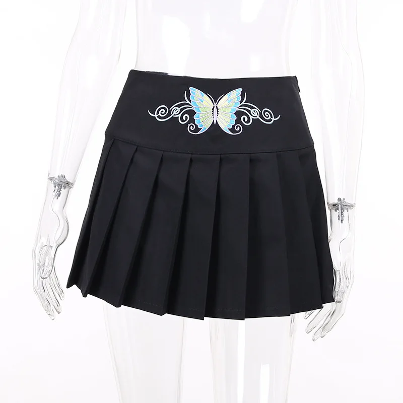 Сексуальная женская черная юбка в стиле панк с вышивкой бабочки, Готическая трапециевидная плиссированная супер Короткая мини-юбка в стиле Харадзюку с высокой талией, юбка гранж для S