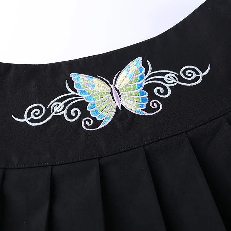 Женская мини-юбка с вышивкой и бабочками, в стиле Харадзюку