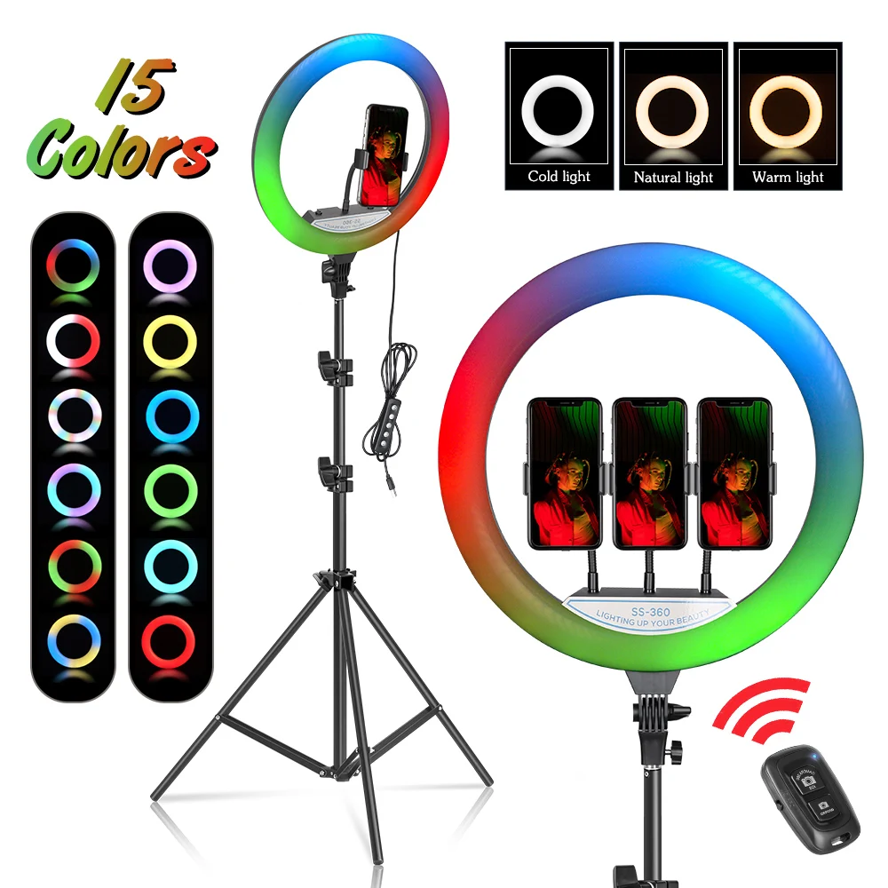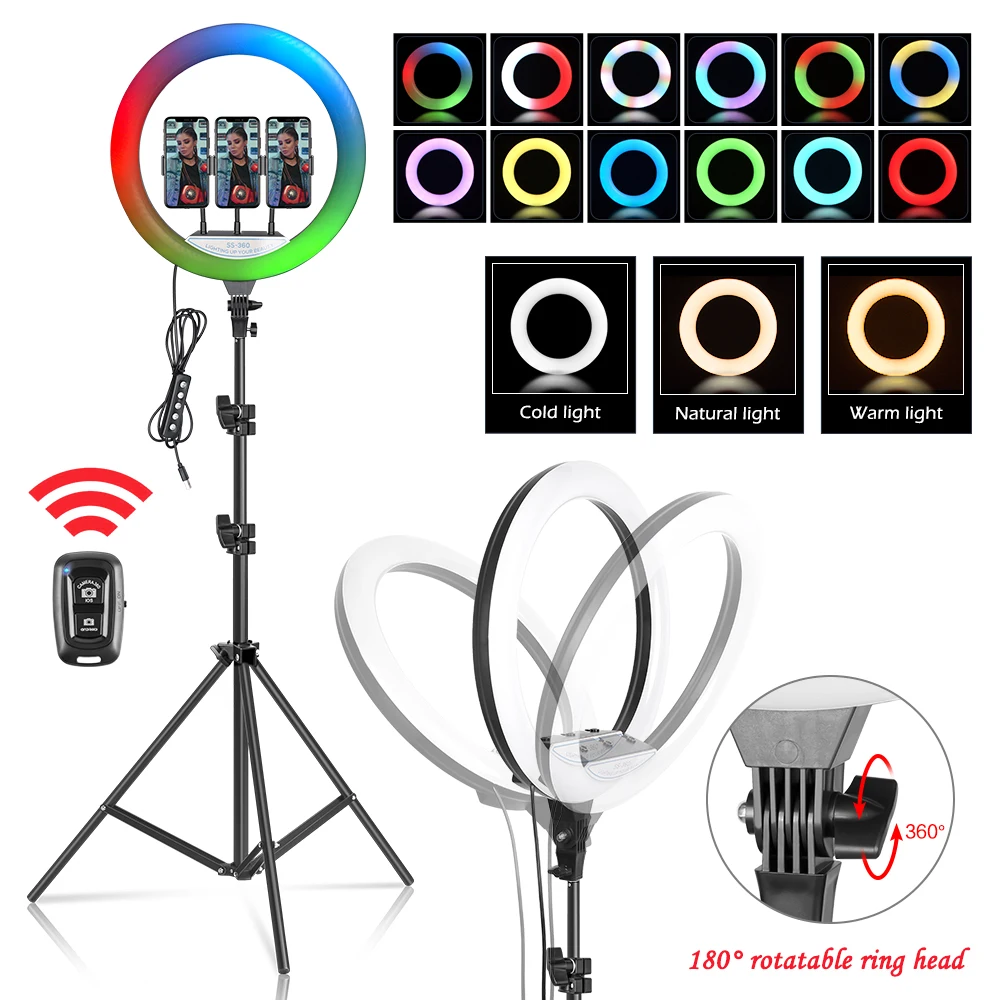 Светодиодное кольцо для селфи, 14 дюймов35 см, RGB, со стойкой, штатив для фотографии, студийные кольцевые лампы для телефона, Youtube, макияжа, видео, видеоблогов