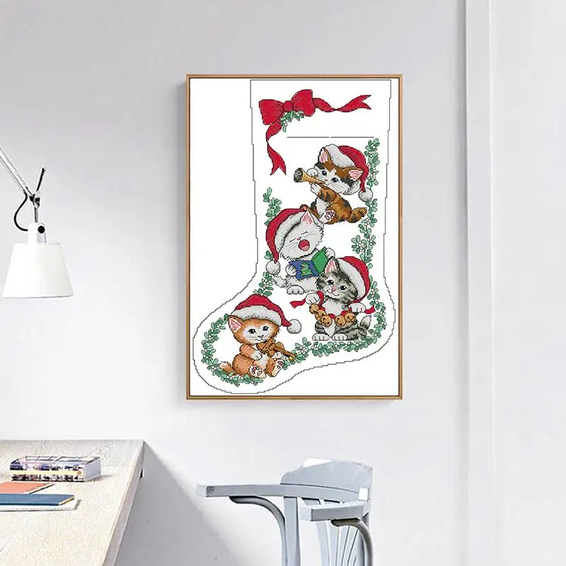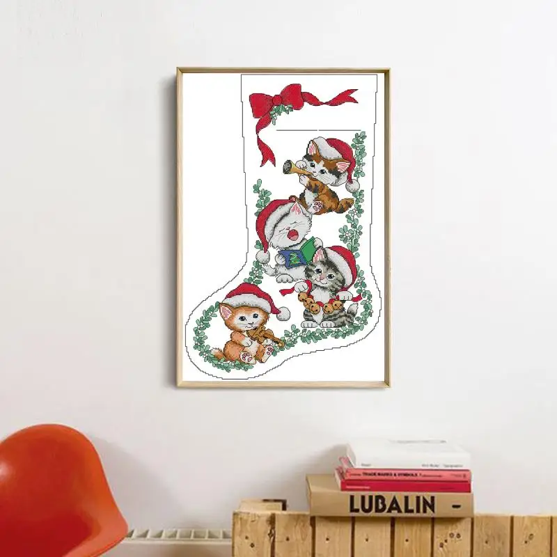 Набор для вышивки рождественскими чулками с котенком, Набор для вышивки крестиком сделай сам, мультяшное животное 14CT11CT, Набор для вышивки на холсте, рукоделие, картина для украшения дома