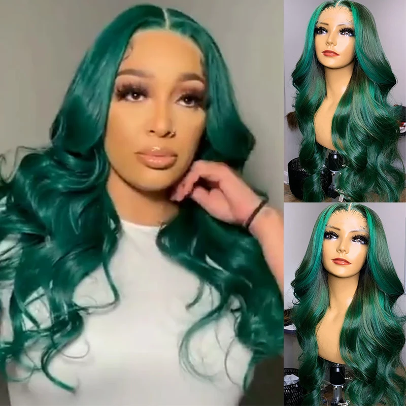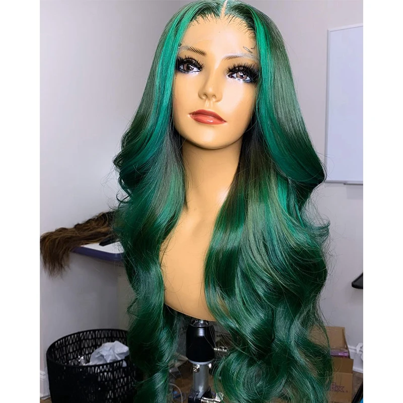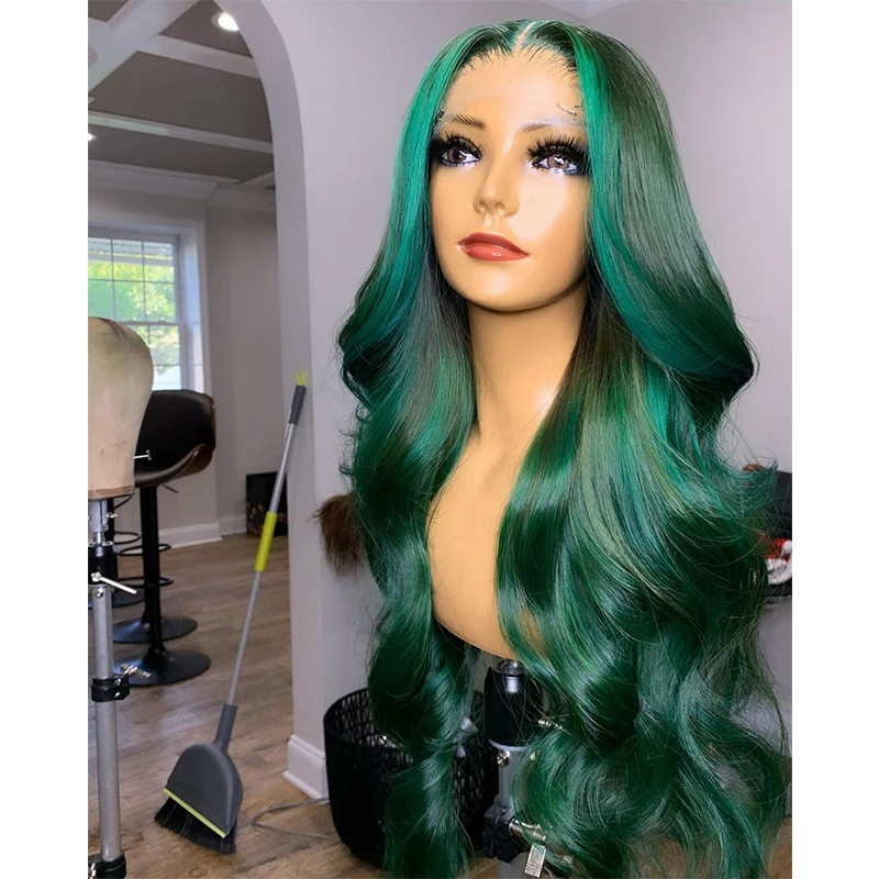 Зеленые передние парики на сетке, предварительно выщипанные перуанские волнистые волосы Remy 13x 4, парики из человеческих волос на сетке спереди для черных женщин, парик на сетке