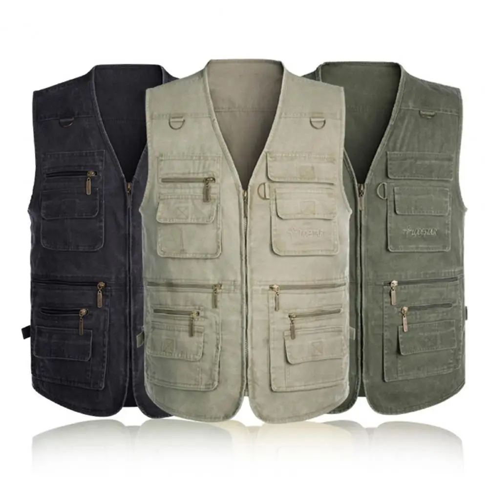 Мужской классический жилет с несколькими карманами, мужской однотонный жилет без рукавов, рабочая куртка, жилет для фотографа, куртка большого размера для повседневной жизни