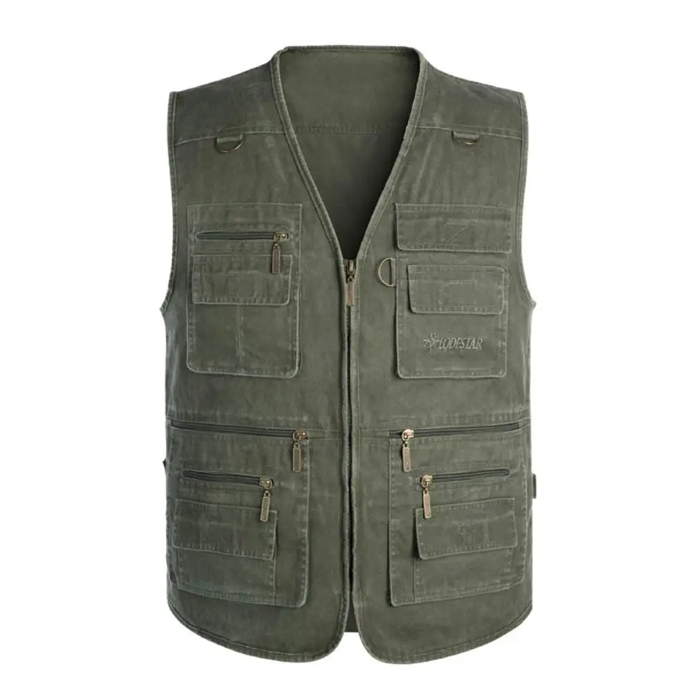 Мужской классический жилет с несколькими карманами, мужское однотонное разгрузочное пальто без рукавов, жилет для фотографа, куртка большого размера