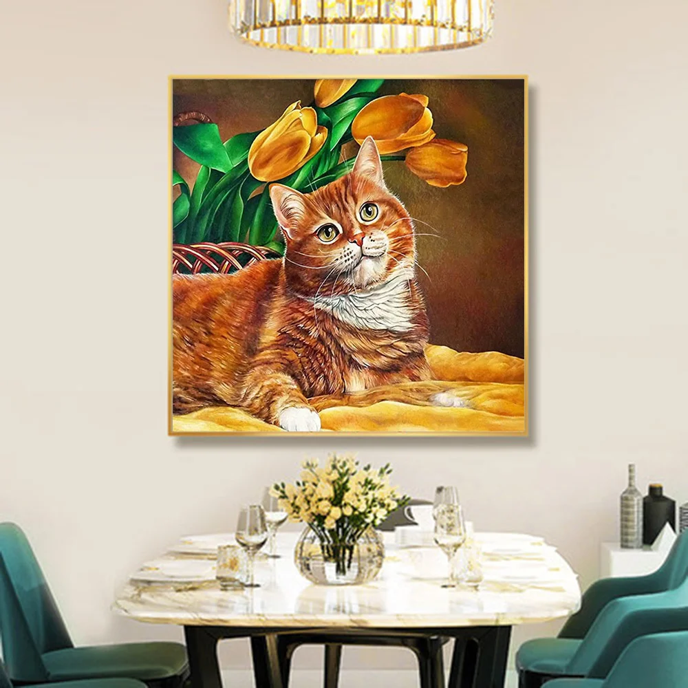 Алмазная живопись 5d Huacan с кошкой и тюльпаном, мозаика с животными, цветами, вышивка крестиком, настенные Стикеры, Алмазное искусство
