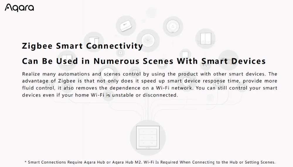 Этот переключатель должен работать с Aqara Gateway для достижения функции интеллектуального дистанционного управления.