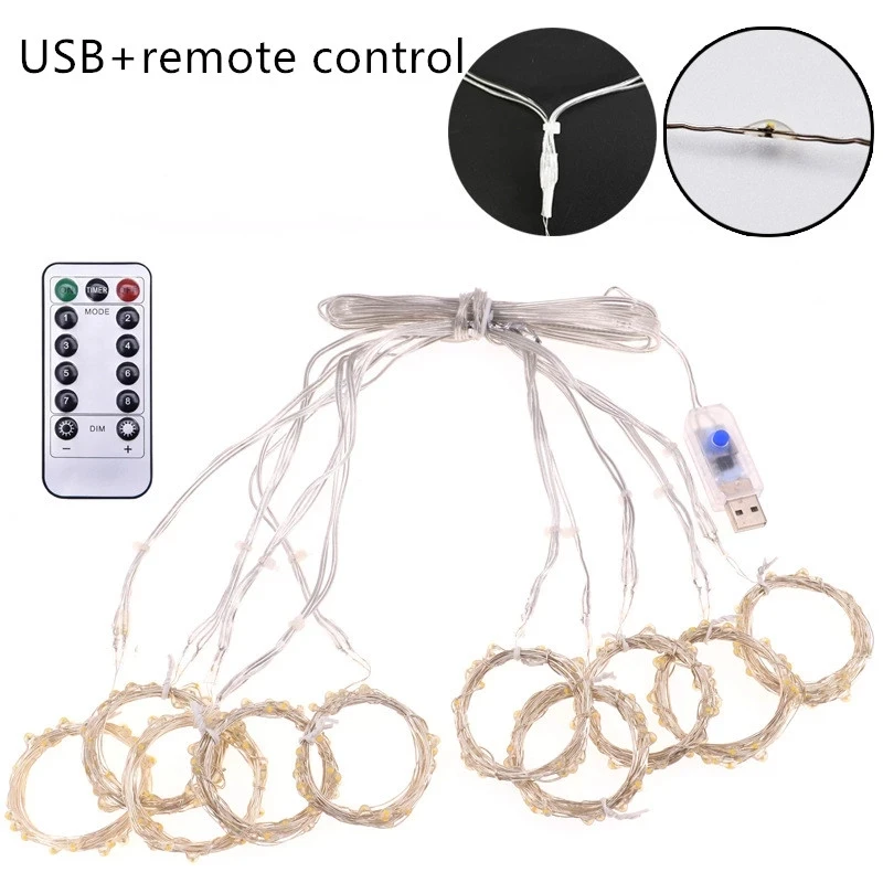 Светодиодная гирлянда с дистанционным управлением, занавеска с пита...