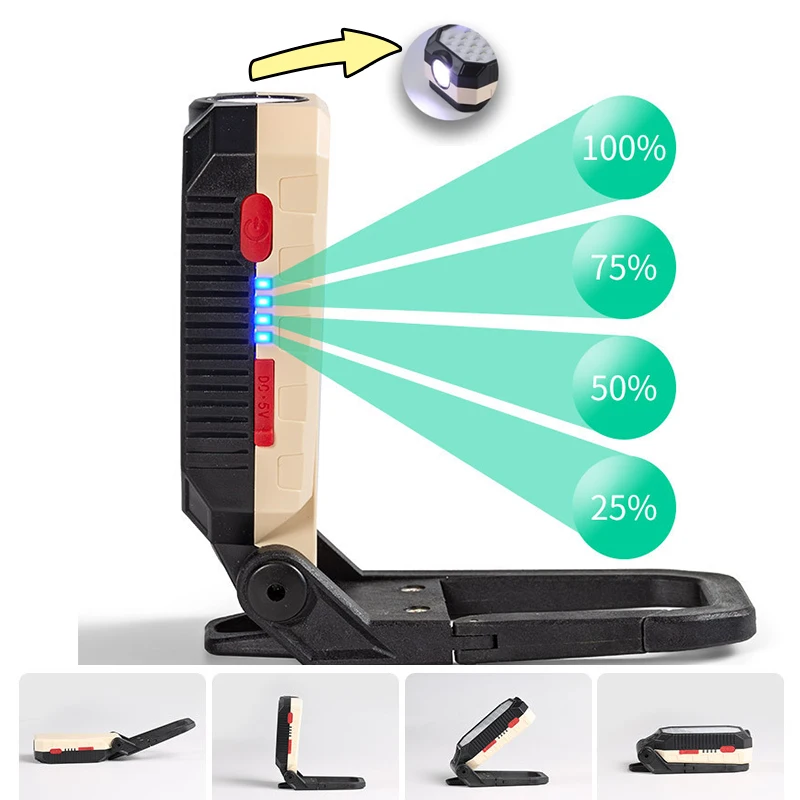 USB Перезаряжаемый COB рабочий светильник, портативный светодиодный светильник для вспышки, регулируемый водонепроницаемый фонарь для кемпинга, магнитный дизайн с дисплеем питания