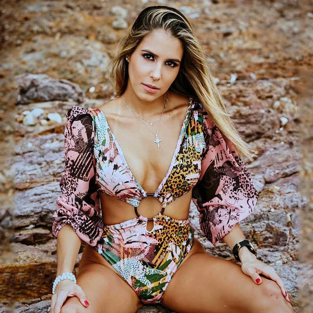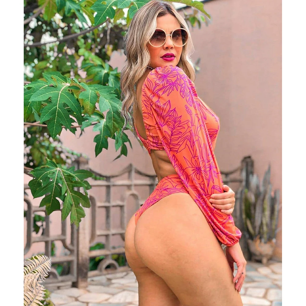 Цельный купальный костюм 2021, сексуальная одежда для плавания с вырезами, женский купальный костюм, купальный костюм с длинным рукавом, пляжная одежда, монокини с принтом для плавания