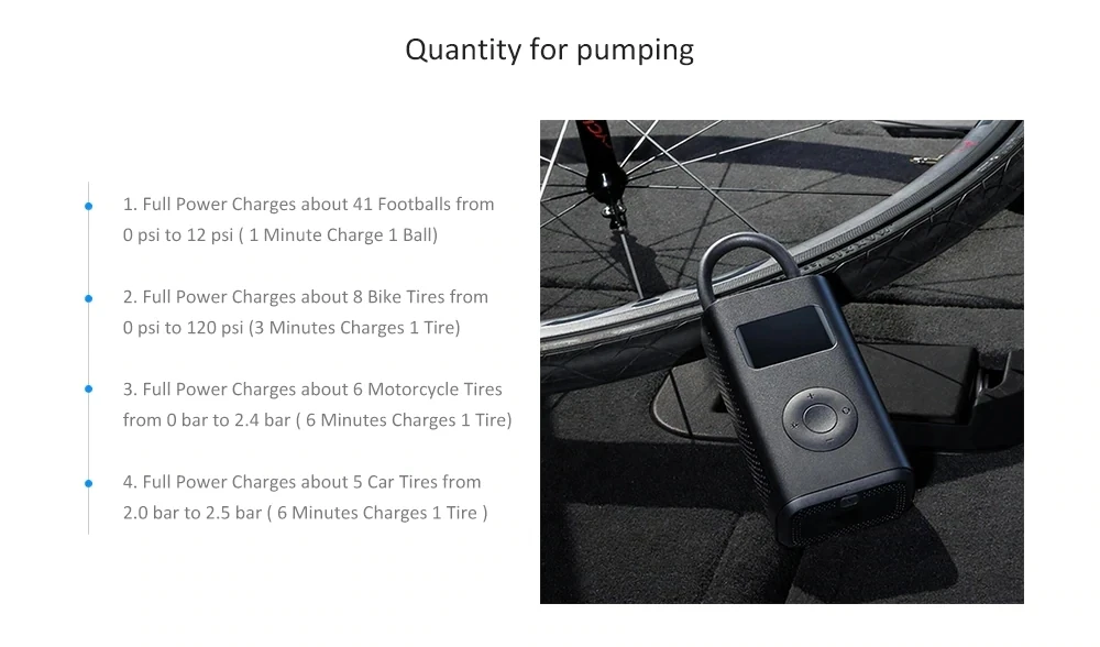 Подходит для различных предметов для надувания, таких как шины для pro-bike, автомобильные шины для домашнего использования, шины для мотоциклов, шины для электровелосипедов, шары, кольца для плавания, надувные игрушки и другие надувные изделия. Экономит энергию и время. Облегчают жизнь.