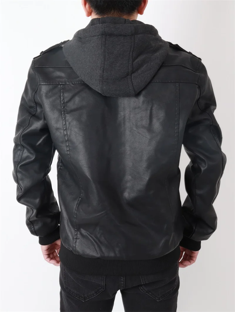 Куртка-бомбер мужская из ПУ кожи, со съемным капюшоном, на осеньзиму