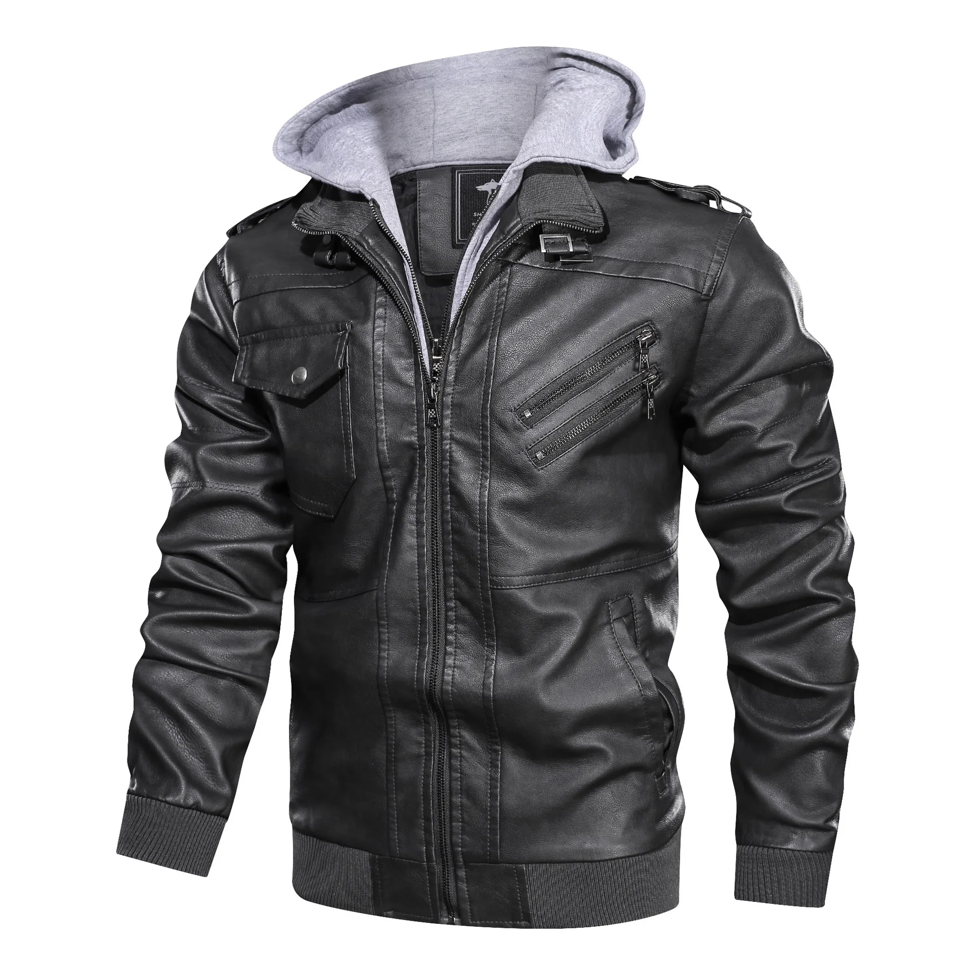 Мужская Осенняя кожаная куртка с капюшоном, мотоциклетная куртка из искусственной кожи, модная куртка в стиле панк, мужская повседневная Осенняя кожаная куртка, Новинка