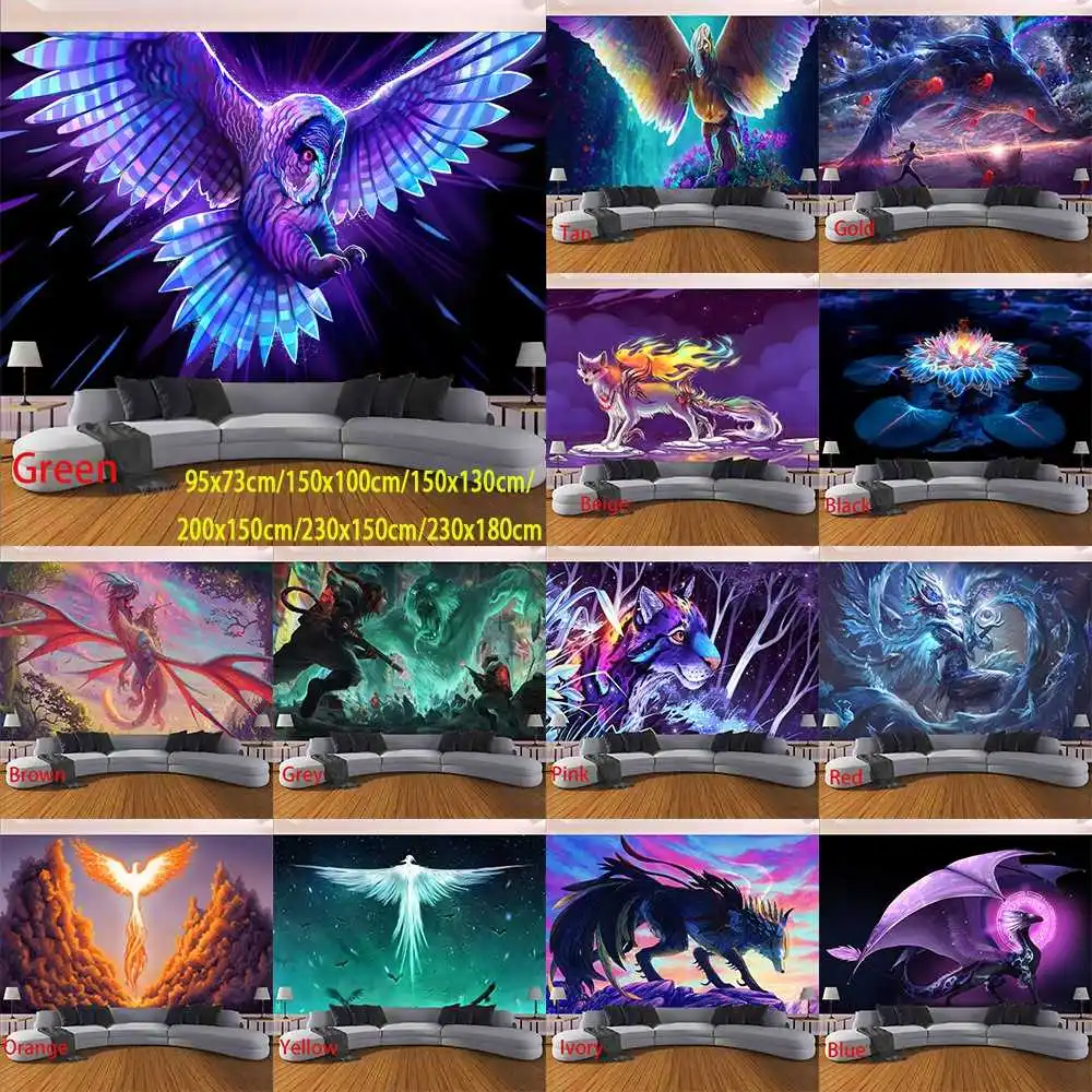 Фэнтезийная сова, птица, настенное украшение, психоделические животные, гобелены, пляжное одеяло для йоги, настенное украшение в стиле хиппи