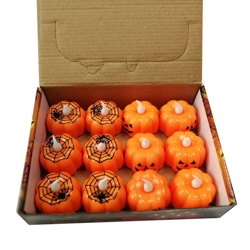 Лампа в виде тыквы на Хэллоуин, 12 шт., Светодиодная свеча, фонарь ...