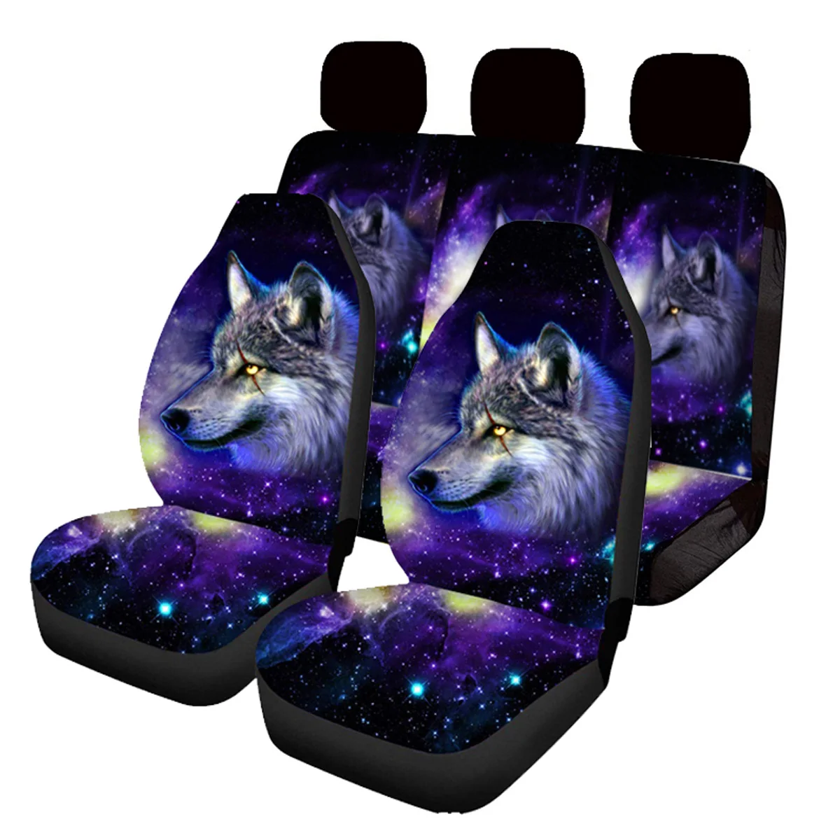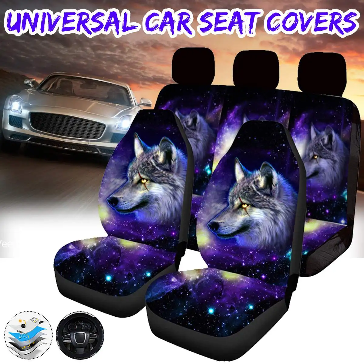 17 шт. универсальные автомобильные чехлы с волчьим узором, грязеустойчивые чехлы на передние и задние сиденья для фургона BMW и т. д. с набором чехлов на колеса