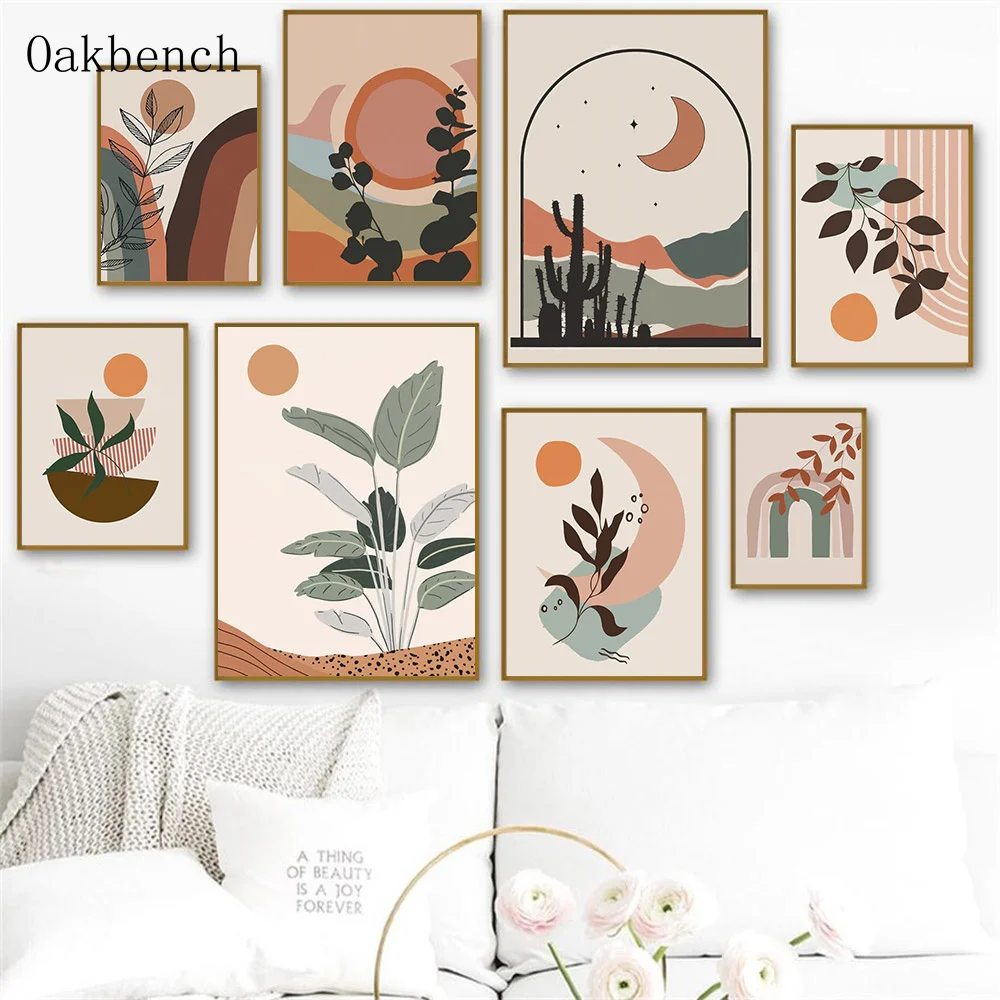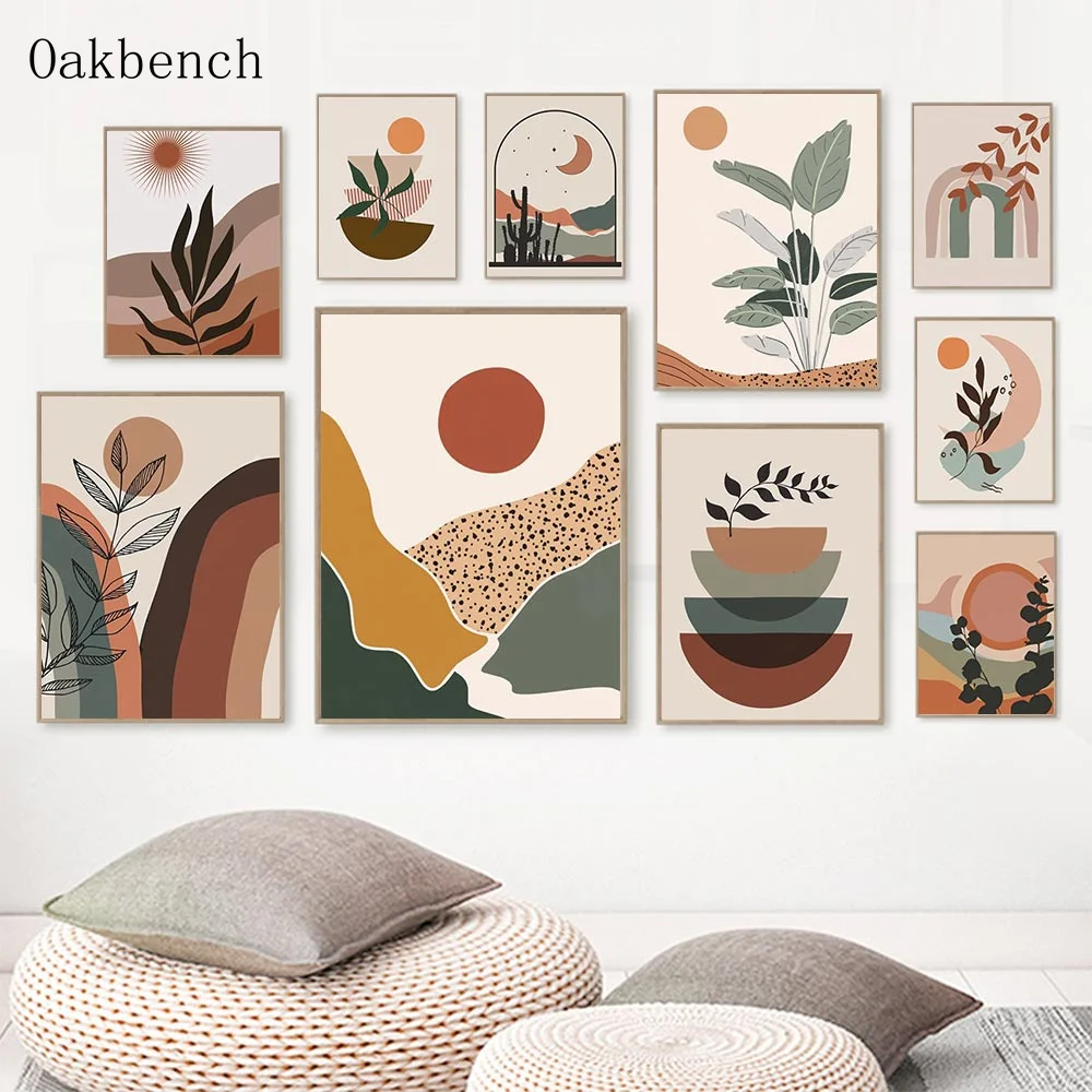 Постер на холсте в стиле бохо, абстрактная Настенная картина с изображением растений, геометрические плакаты, принты на солнечные лучи, Скандинавская Настенная картина, декор для спальни