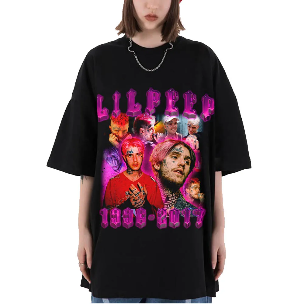 Футболка LILPEEP женская с принтом, хлопковая тенниска в стиле панк, топ в стиле хип-хоп, черная рубашка