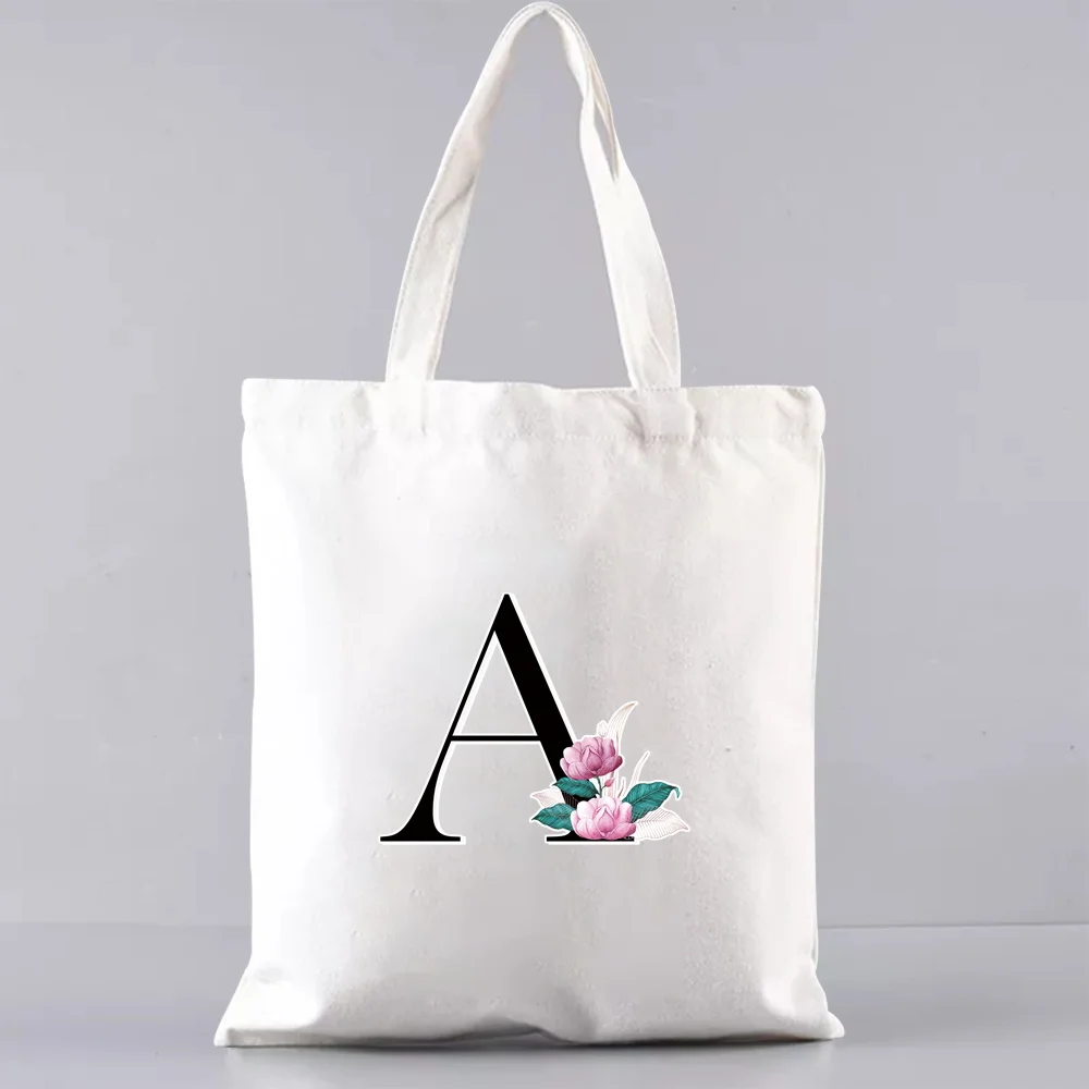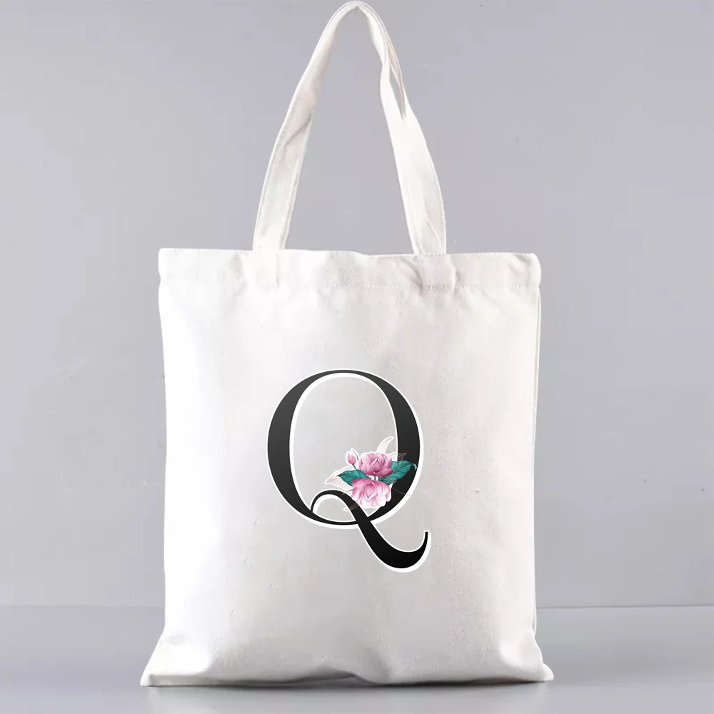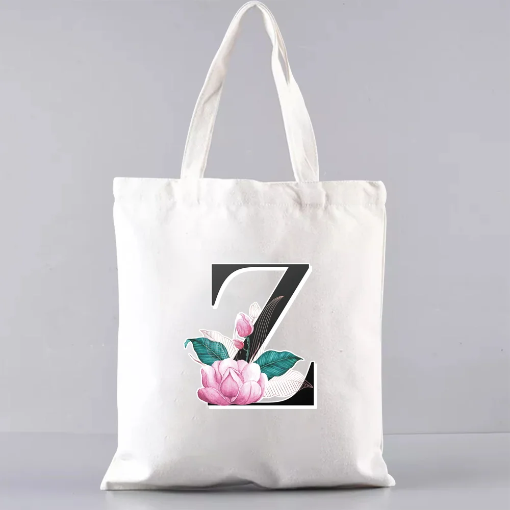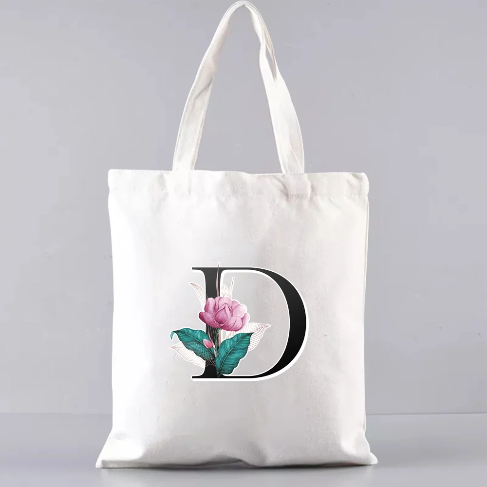 Холщовая Сумка для покупок, классические белые студенческие тоуты, 26 дюймов, с принтом в виде английского алфавита, в стиле Харадзюку
