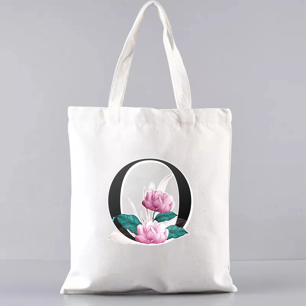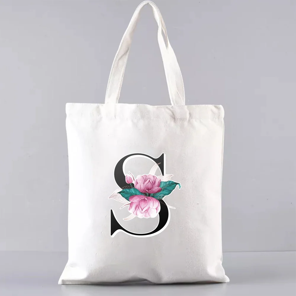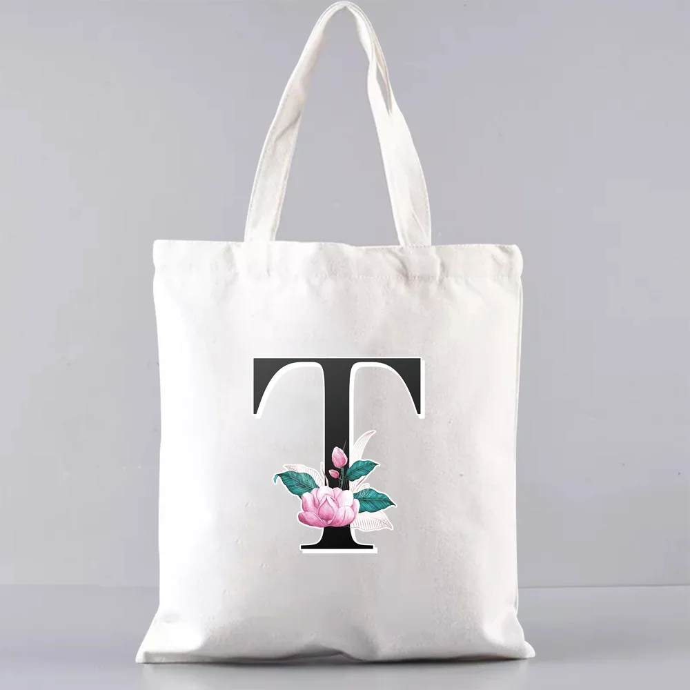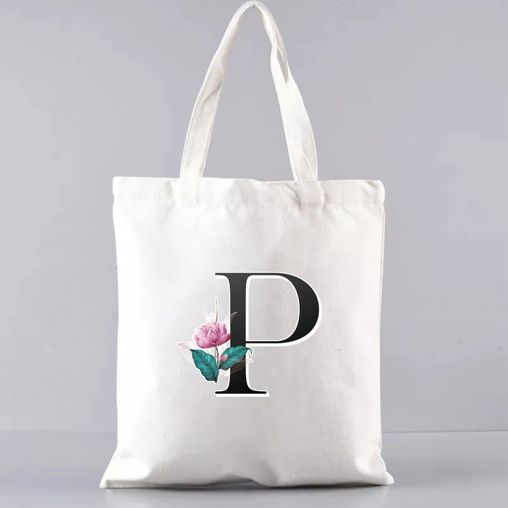 Холщовая Сумка для покупок, классические белые студенческие тоуты, 26 дюймов, с принтом в виде английского алфавита, в стиле Харадзюку