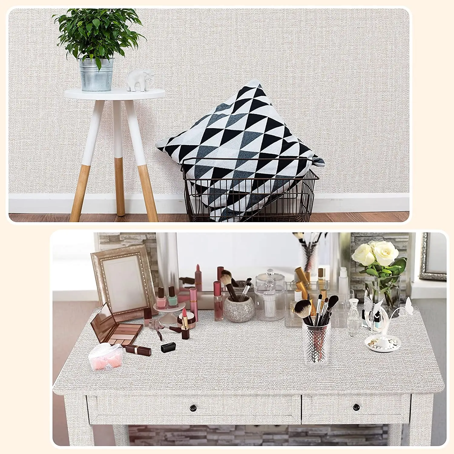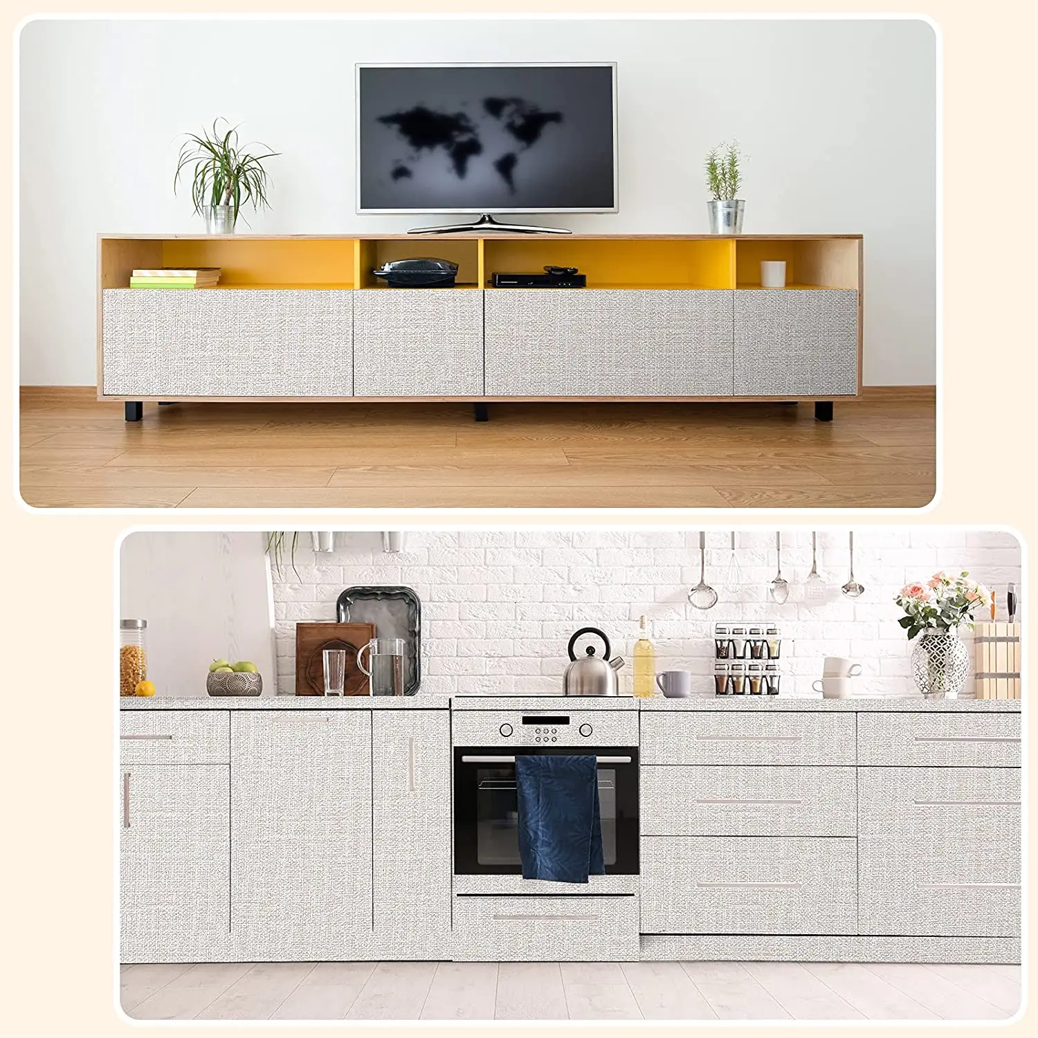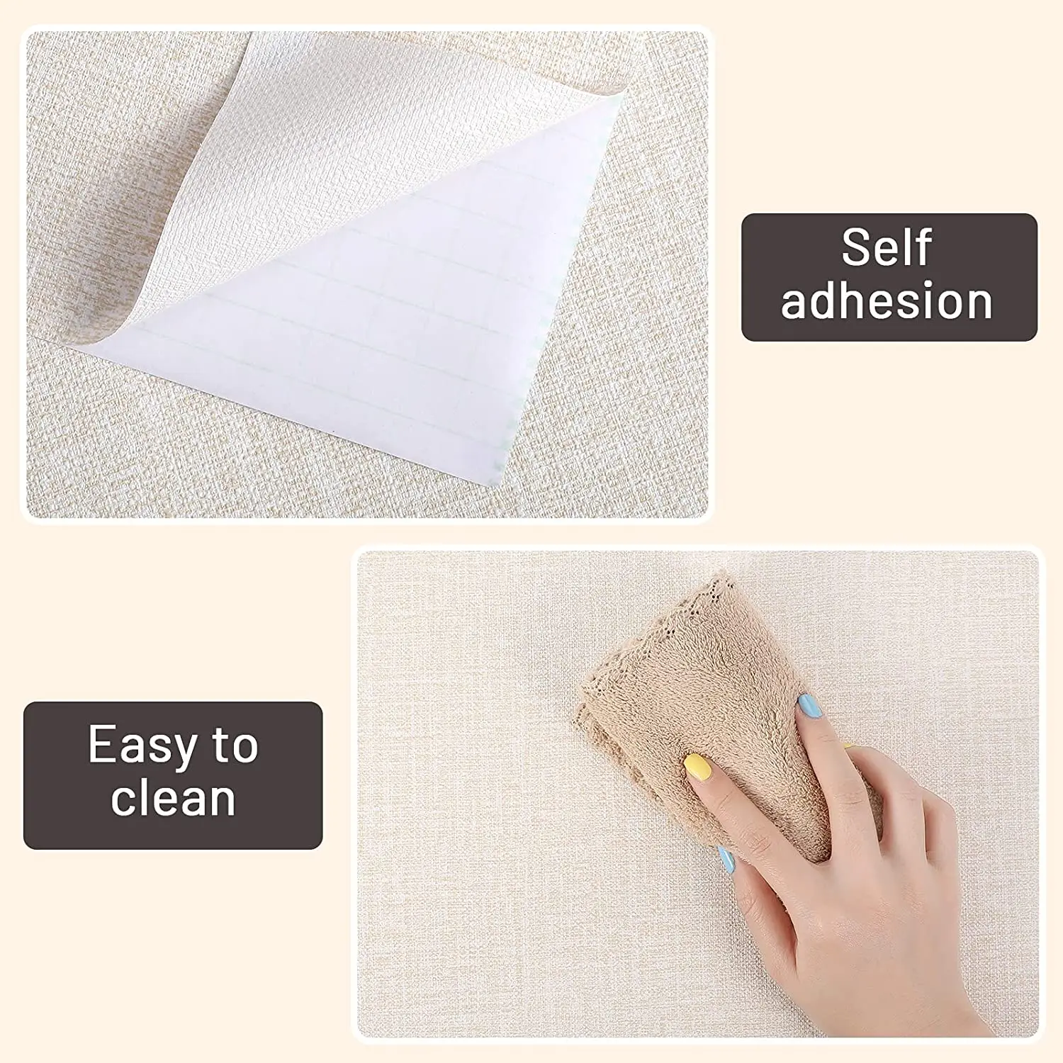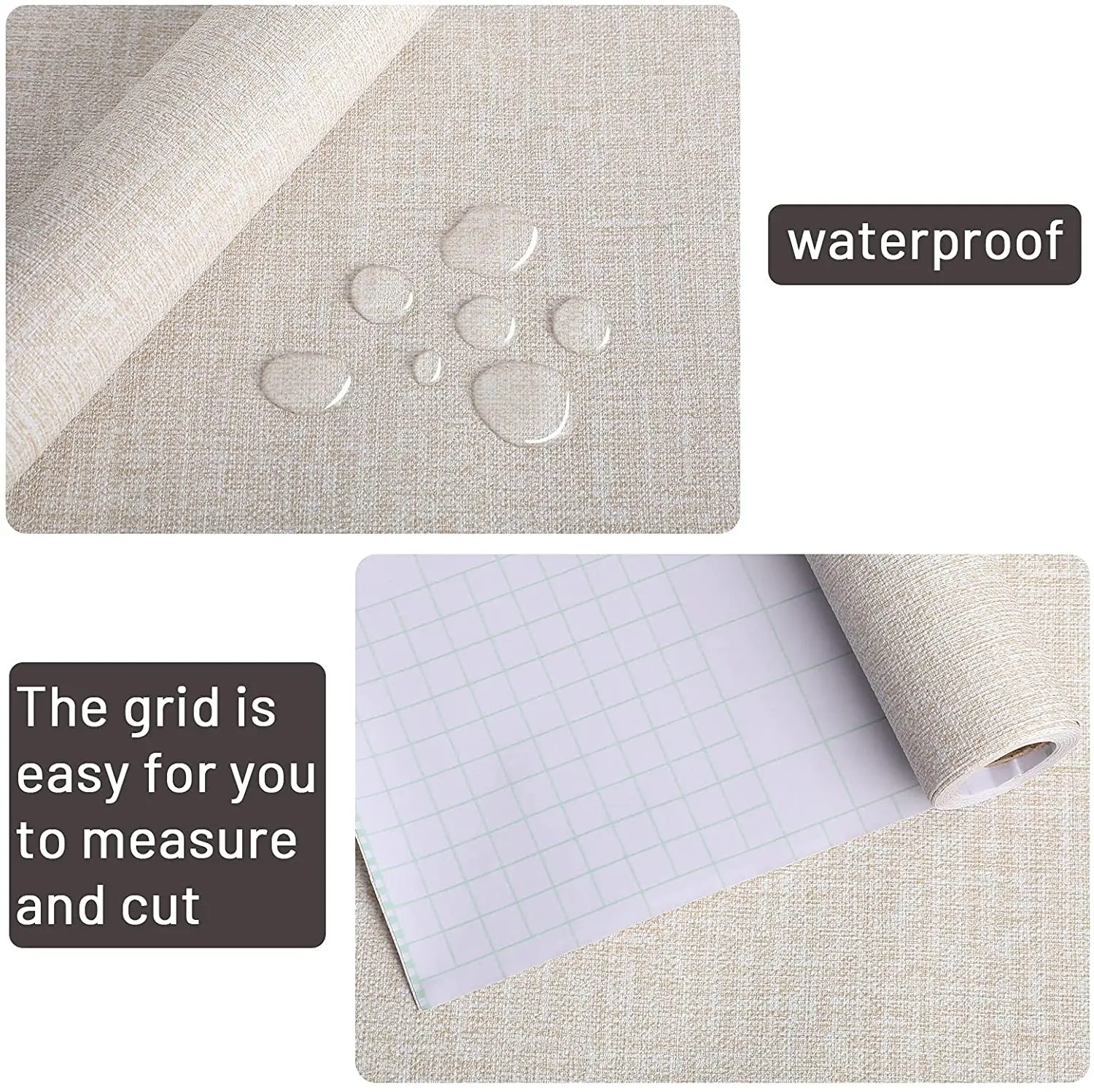 Обои бежевые Самоклеящиеся с льняной текстурой, водонепроницаемые обои со съемным клеем для украшения отеля, спальни