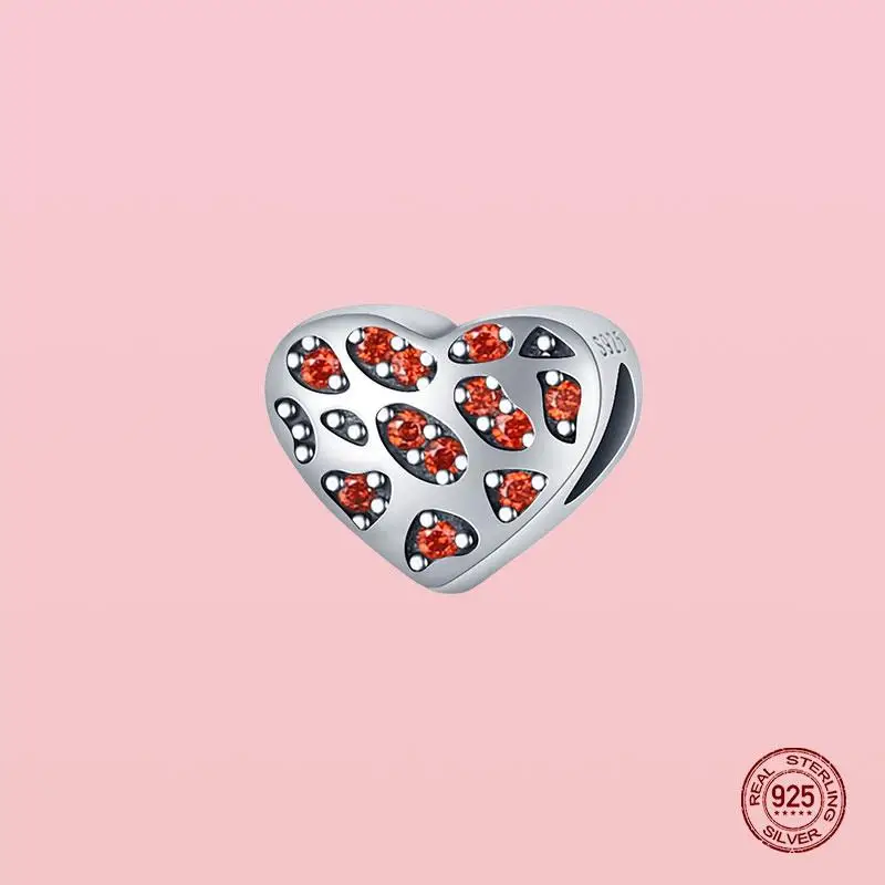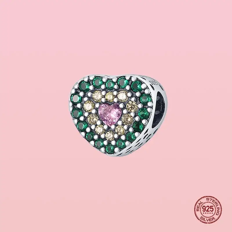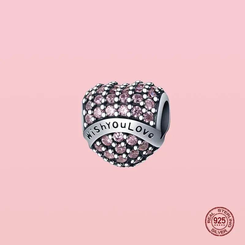 Лидер продаж, подвеска из настоящего серебра, сверкающее циркониевое сердце, ожерелье из бисера, подходит для оригинального браслета Pandora, подвески сделай сам, модные ювелирные изделия