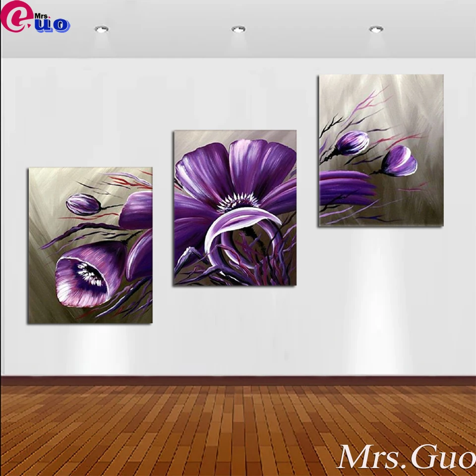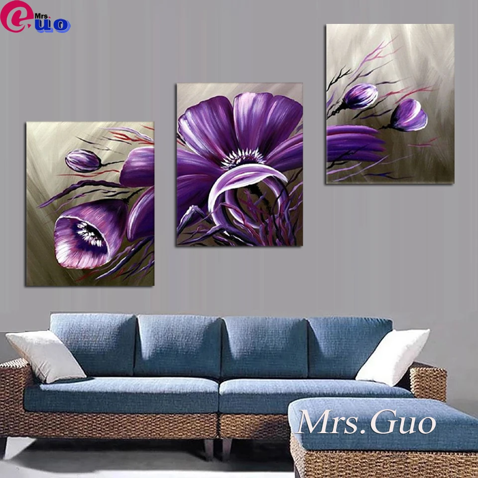 Цветочная ваза, алмазная живопись, Триптих, полная квадратная/круглая дрель, 5D, сделай сам, Алмазная мозаика, 3 предмета, фиолетовая Цветочная вышивка ручной работы