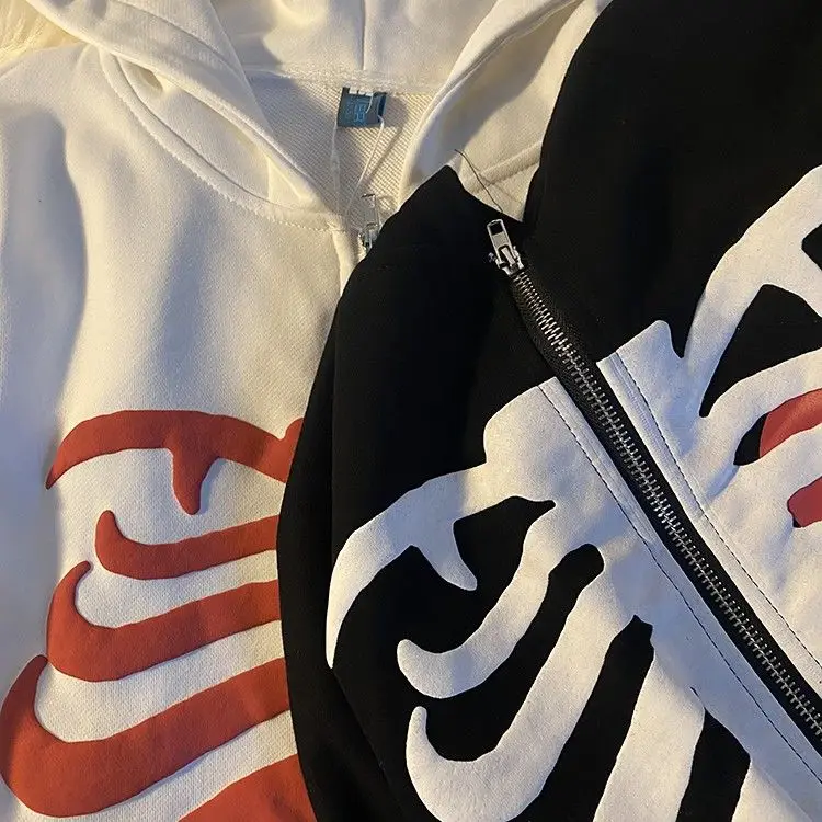 Куртка в стиле Харадзюку, с длинным рукавом, на молнии, в Корейском стиле, с принтом черепа