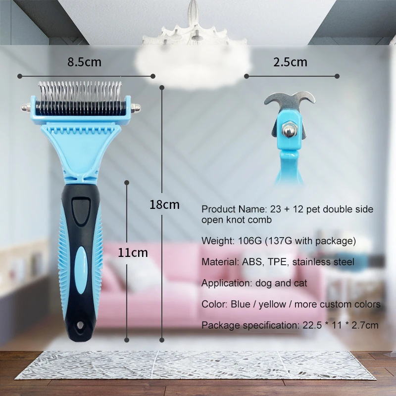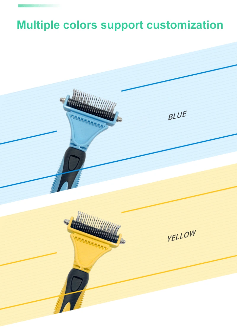 Гребень для вычесывания домашних животных, голубойжелтый инструмент для груминга кошек и собак