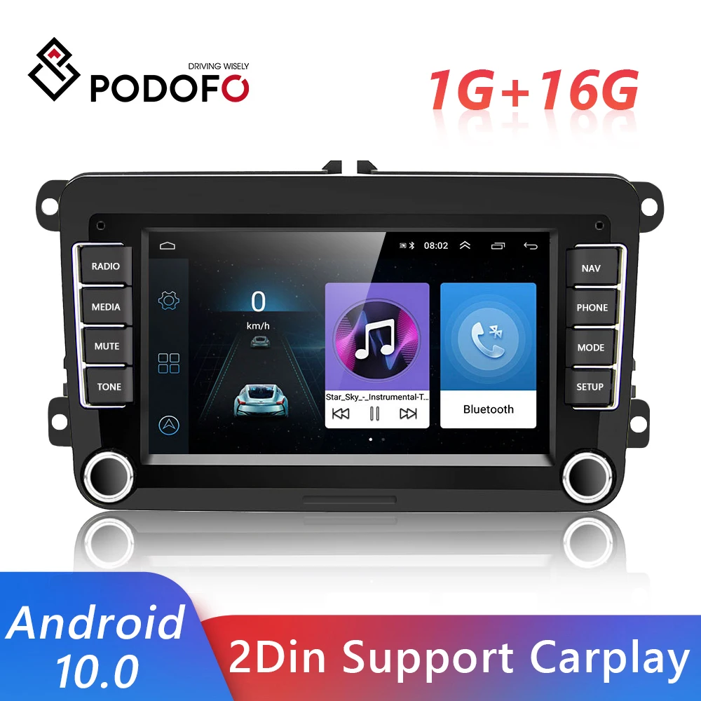 Podofo 2Din Android 10,0 GPS стерео 7 "FM Автомобильный мультимедийный плеер с Carplay для Volkswagen Passat Polo Golf Skoda Seat VW