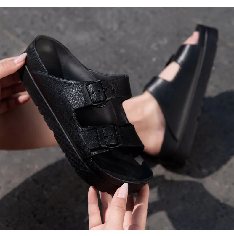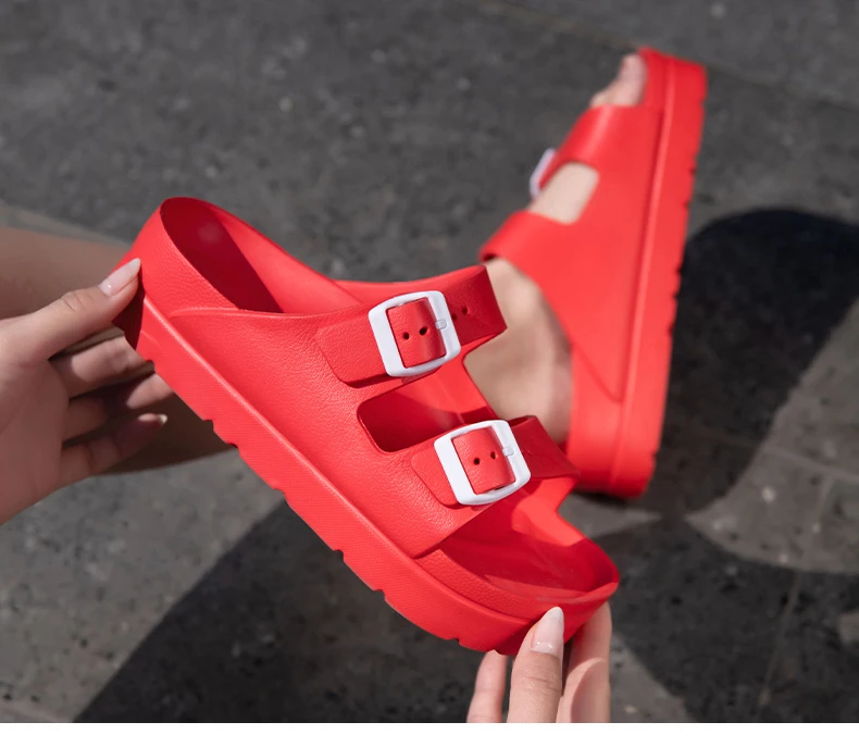 Сандалии женские на платформе, летние шлепанцы из пластика, на толстой плоской платформе, с двумя пряжками, карамельные цвета, 2022