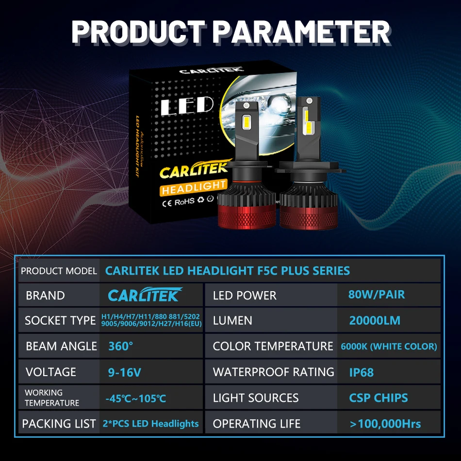 Светодиодные фары Carlitek F5 F5C H1 9012 лм H4 H7 9005 HIR2 H11 H9...