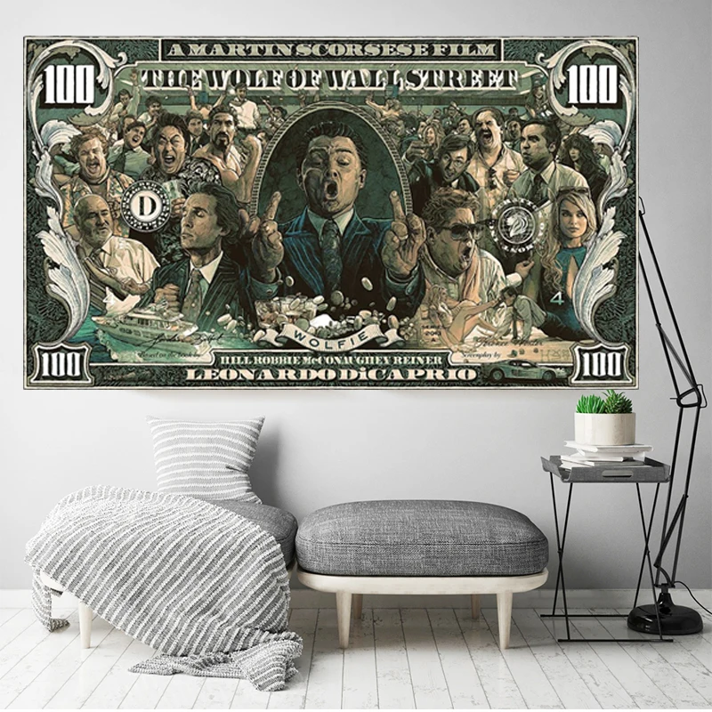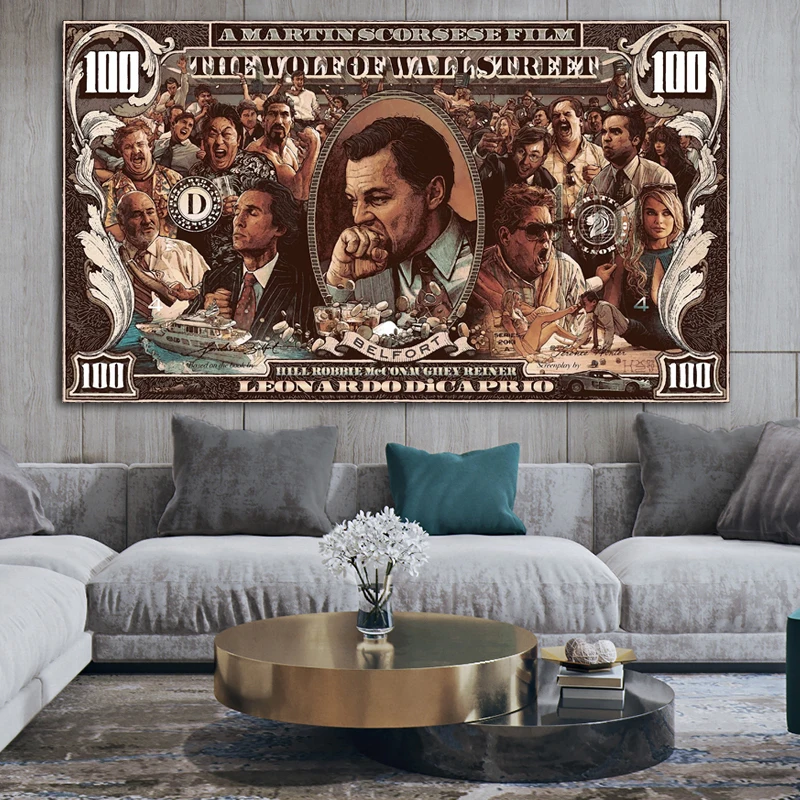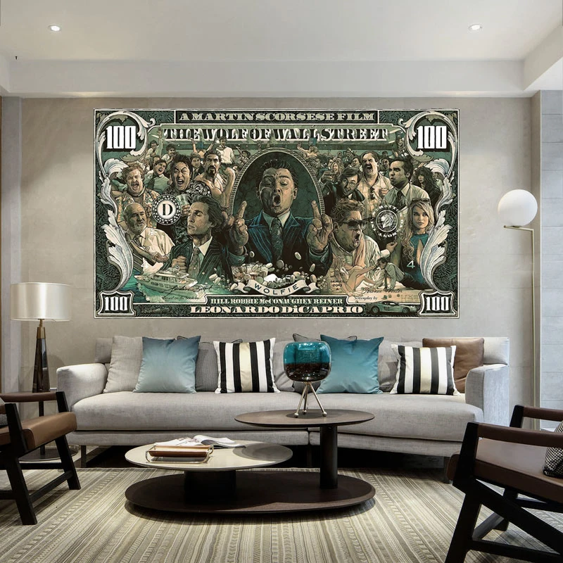 Художественные граффити Ван, уличные деньги, искусство 100 долларов, холст, живопись, плакаты и принты, волк стены, уличная живопись для гостиной