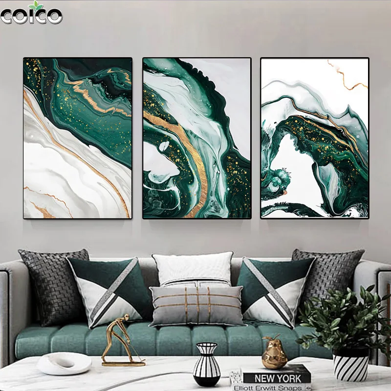 Роскошный постер зеленого золота с мраморной текстурой Абстрактная Картина на холсте с рамкой современное искусство Настенная картина печать домашний Декор картина