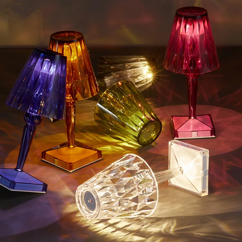Перезаряжаемая акриловая Настольная лампа с бриллиантами, декоративные светильники с USB для спальни, прикроватного столика, светильник с кристаллами, подарок, светильник