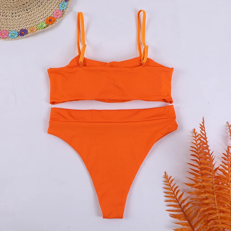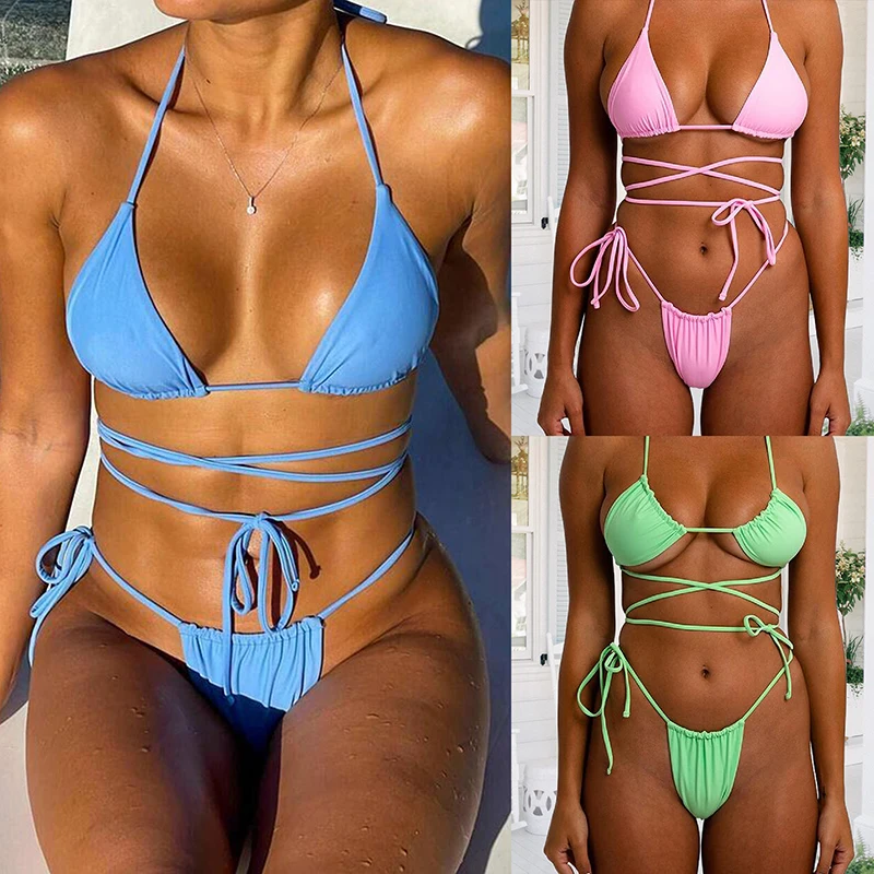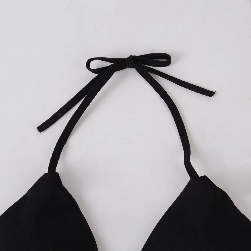 Женский купальник, однотонный раздельный купальник для женщин, бразильский комплект бикини с открытой спиной, Женский сексуальный купальник с открытыми плечами
