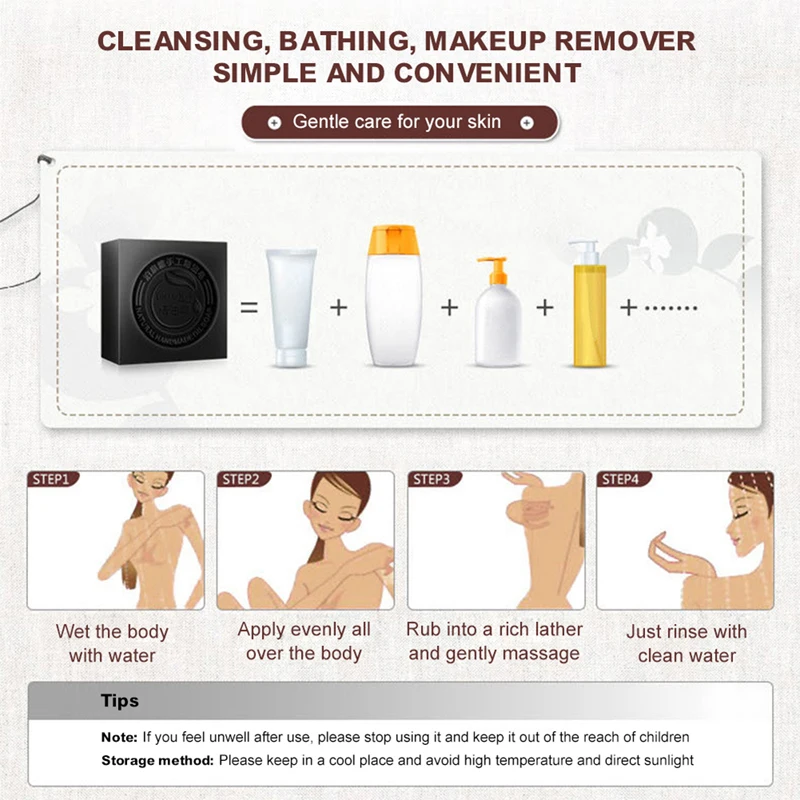 Эффективность: богато содержит бамбуковый уголь и увлажняющий фактор с усиленной увлажняющей функцией, полностью очищает кожу и сохраняет кожу шелковистой и нежной, одновременно отбеливая кожу, помогает улучшить тусклость и оставаться белой кожей и здоровьем.