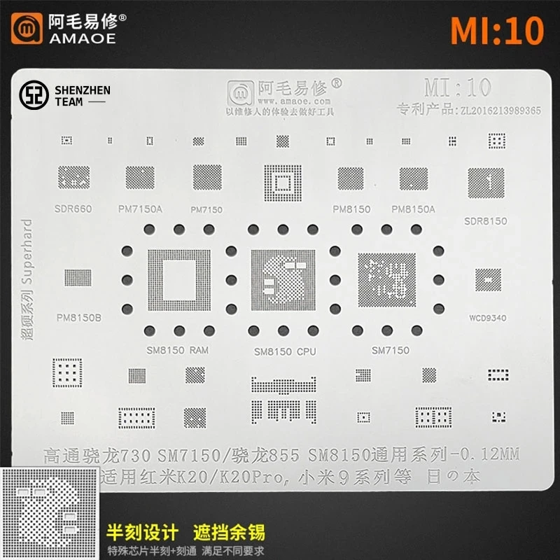 Трафарет AMAOE MI:10 MI10 для Redmi K20 K20Pro Xiaomi 9 SM7150 SM8150 трафарет для реболлинга процессора SDR660 PM8150 PM7150 WCD9340 PM8150A