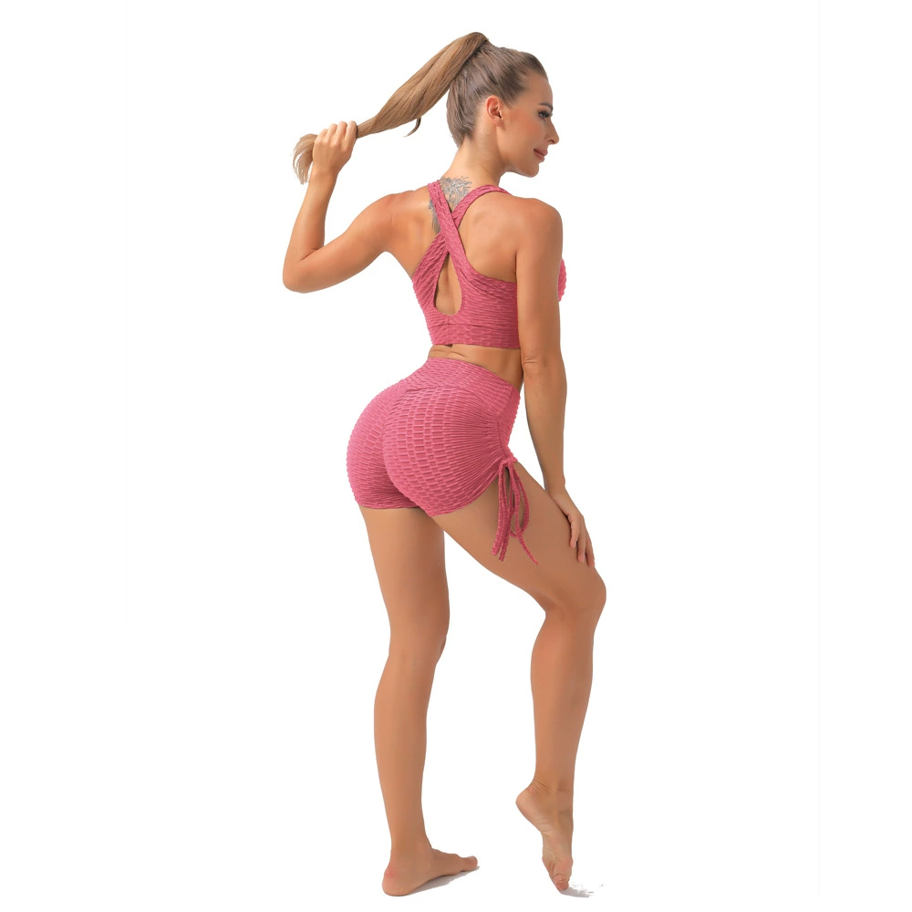 Женские спортивные эластичные шорты с высокой талией и сборками для...