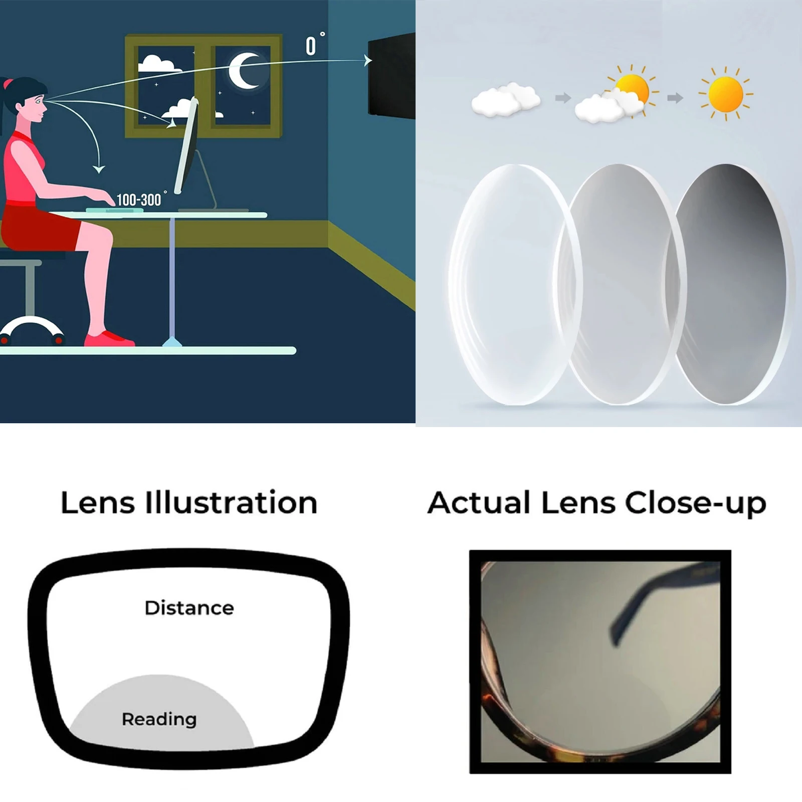 Фотохромные линзы для очков ясны в помещении или ночью и автоматически темнеют до оттенка солнцезащитных очков при воздействии УФ-лучей. Линзы начнут очищаться, как только они окажутся вдали от УФ-лучей, и они будут заметно легче и в основном ясны в течение нескольких минут. Они поглощают УФ-излучение, которое в противном случае может повредить ваши глаза.