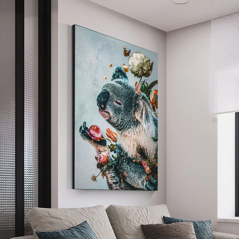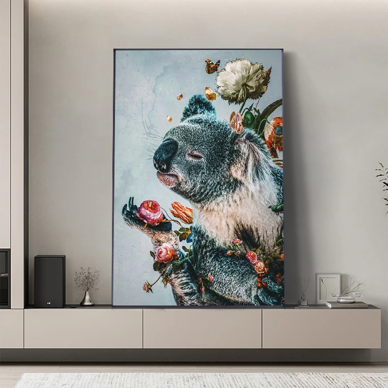 Абстрактное животное коала с цветами, искусство стен, фотообои и принты, Картина на холсте для гостиной, дома