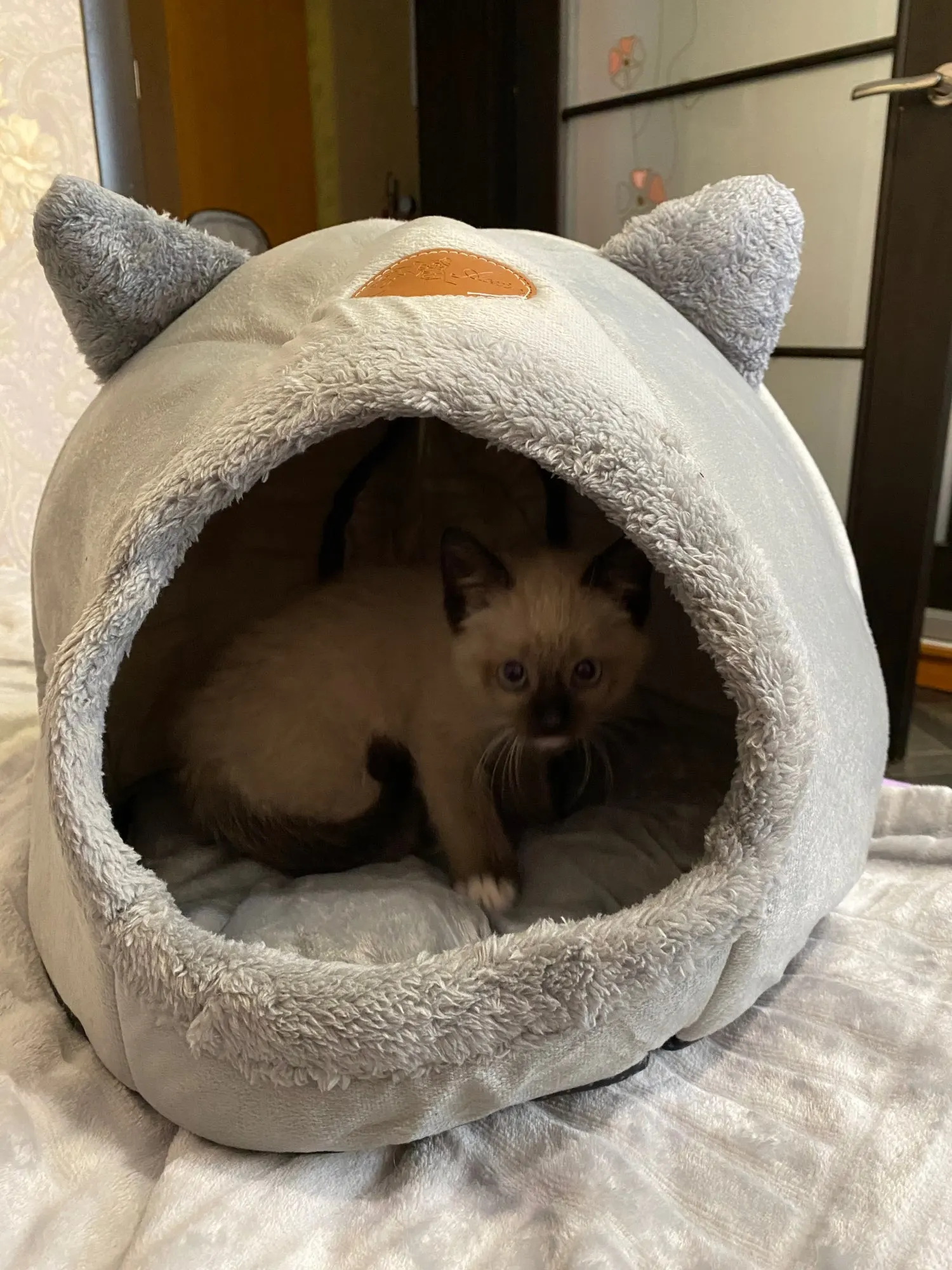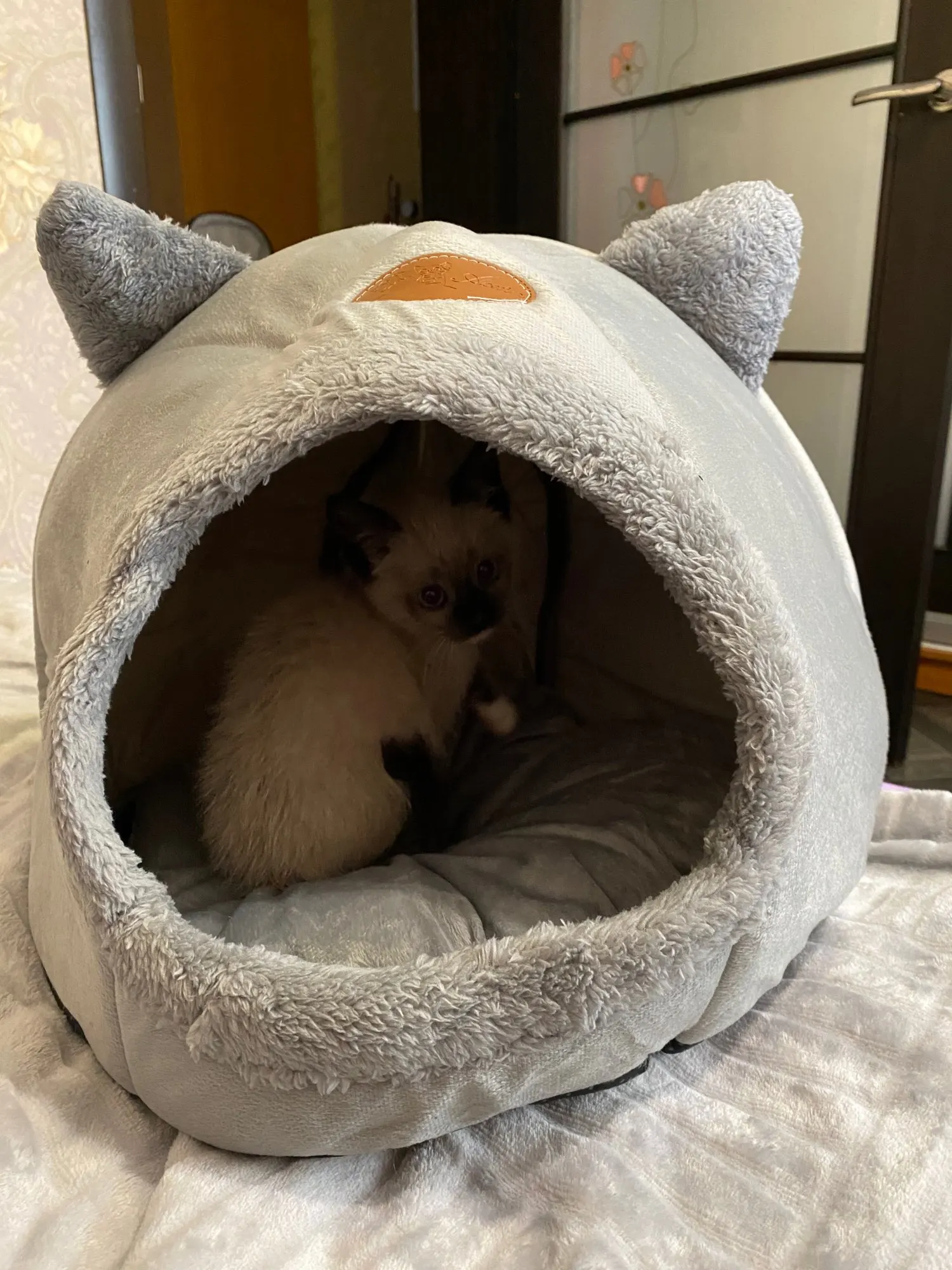 большой мягкий кошачий домик. кот сразу освоил, кот большой, скотиш, но в домике поместился с комфортом. брала в распродажу за 780 руб. если бы знала, что будет такой удачный домик, взяла бы 2-3. к домику была приложена тонкая подкшечка. я сразу её заменила на более толстую, ибо у домика толстые только стенки, а дно -тонкая ткань.