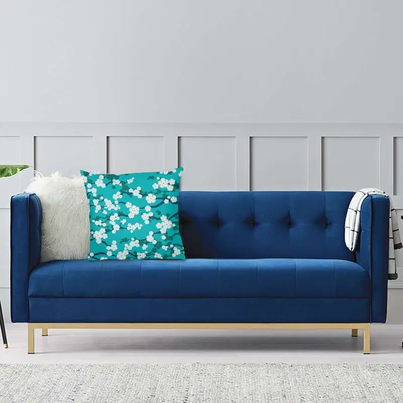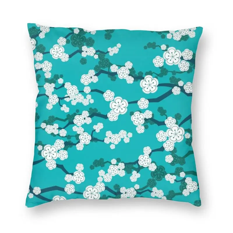Восточные вишневые цветы на бирюзовой подушке чехол для дивана украшение дзен японские Цветы сакуры квадратный чехол для подушки 45x45 см