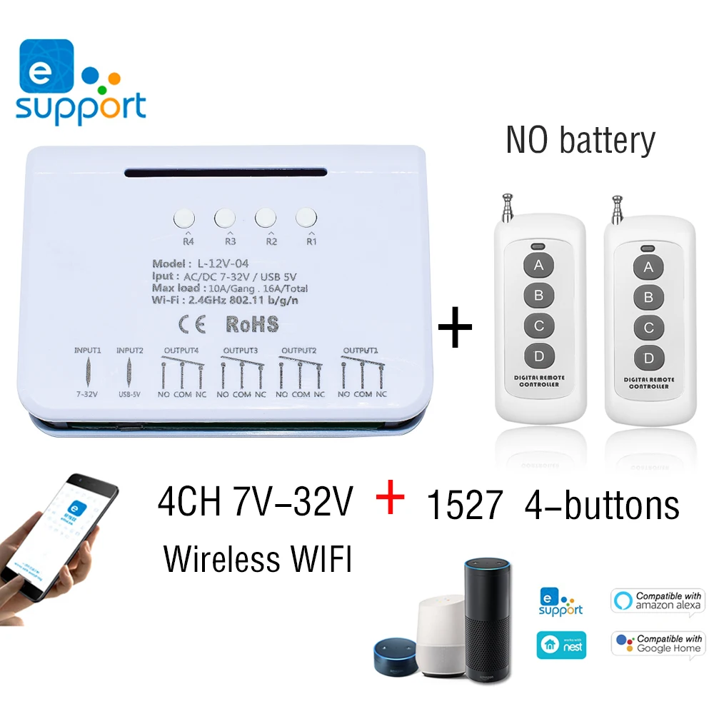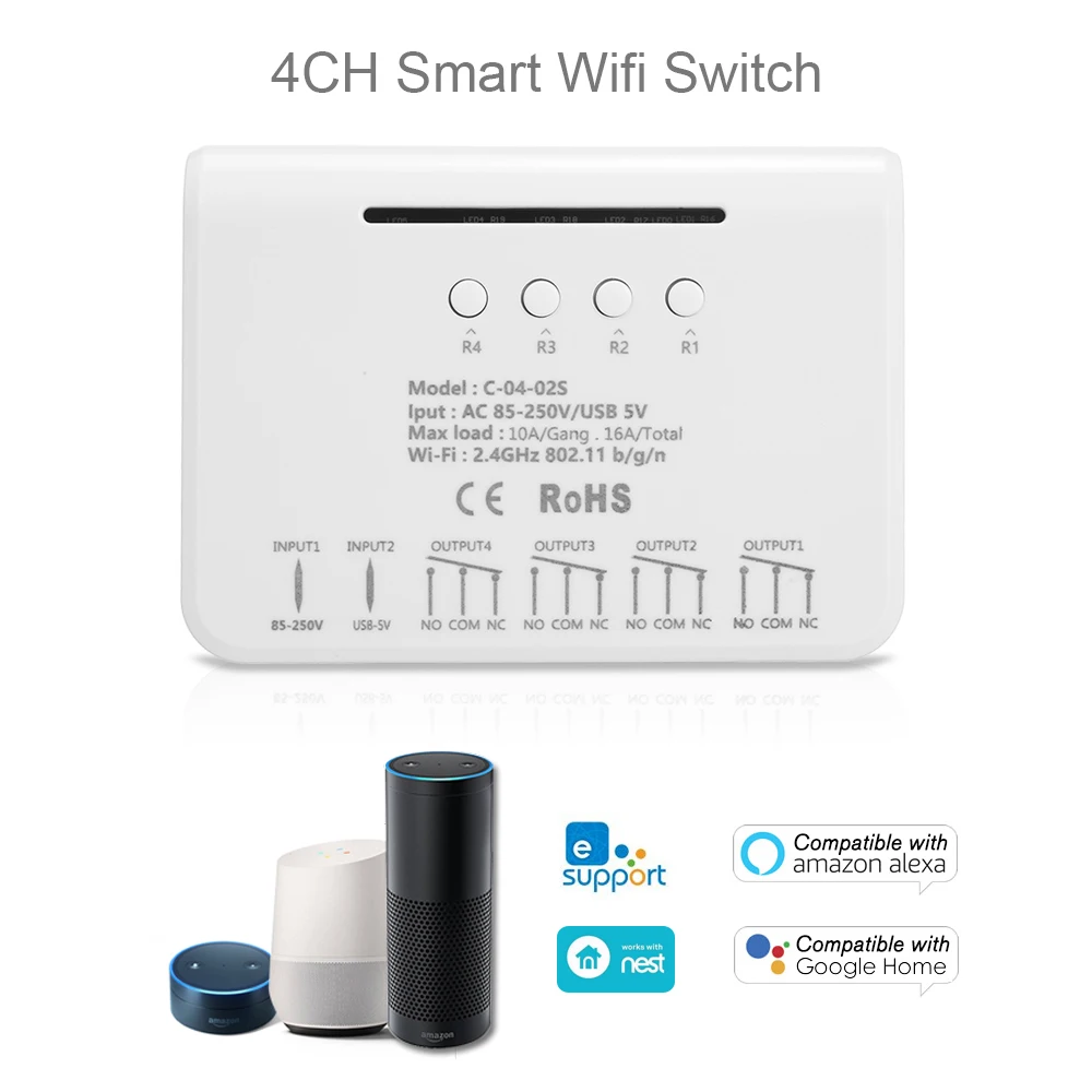 eWelink WiFi Relay 4CH Smart Home Switch Module 85-250V 16A Relay Radio Frequency Remote Control Smart Timer, Alexa Google Home