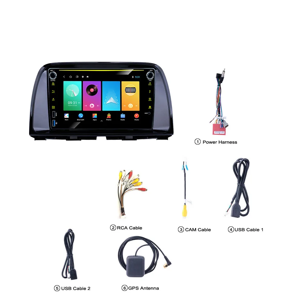 1 x Автомагнитола Mazda CX5 Android1 x Кабель Питания1 Антенна GPS1 вход для камеры1 вход и выход RCA2 x USB-кабеля1 x Инструкция по эксплуатации
