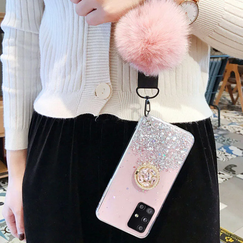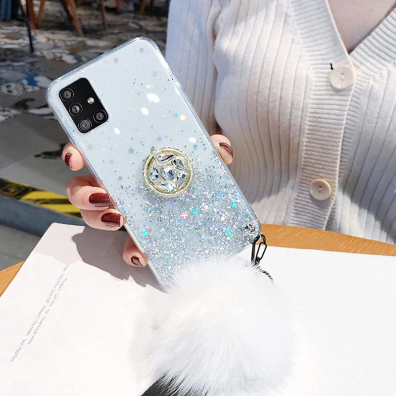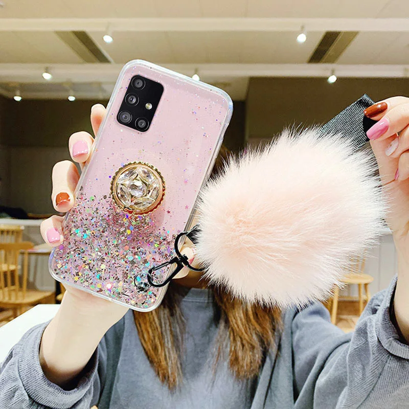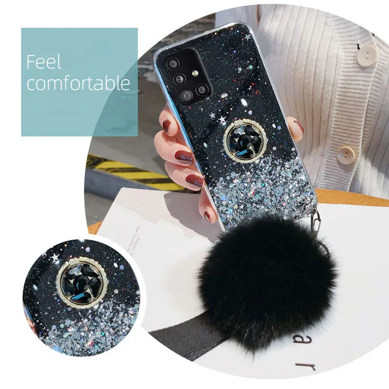 Чехол для Samsung A51, A71, A50, A70, блестящий чехол с кольцом-подставкой и блестками для Samsung A 51, A 71, A 50, A 70, чехлы для телефонов с помпоном