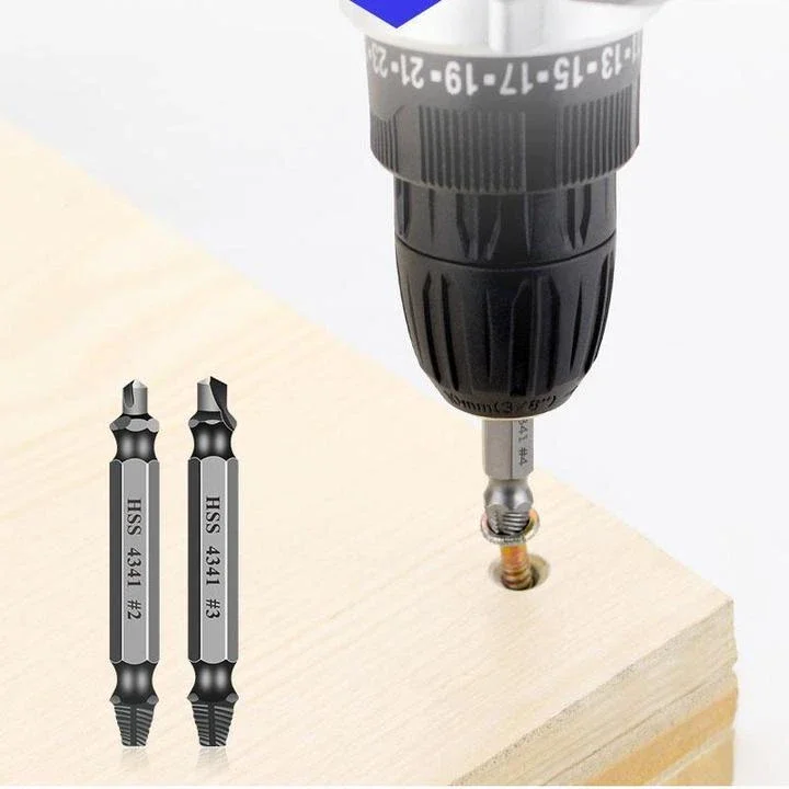 Простота в использованииУдобнее, чем двухстороннее устройство для удаления винтов. Два простых шага, просто нужно электрическое сверло, никаких других инструментов не нужно, не нужно менять вверх и вниз, выберите немного меньше, чем поврежденный винт, вы можете легко удалить винт, пожалуйста, убедитесь, что во время процесса сверло запускается в обратном направлении.