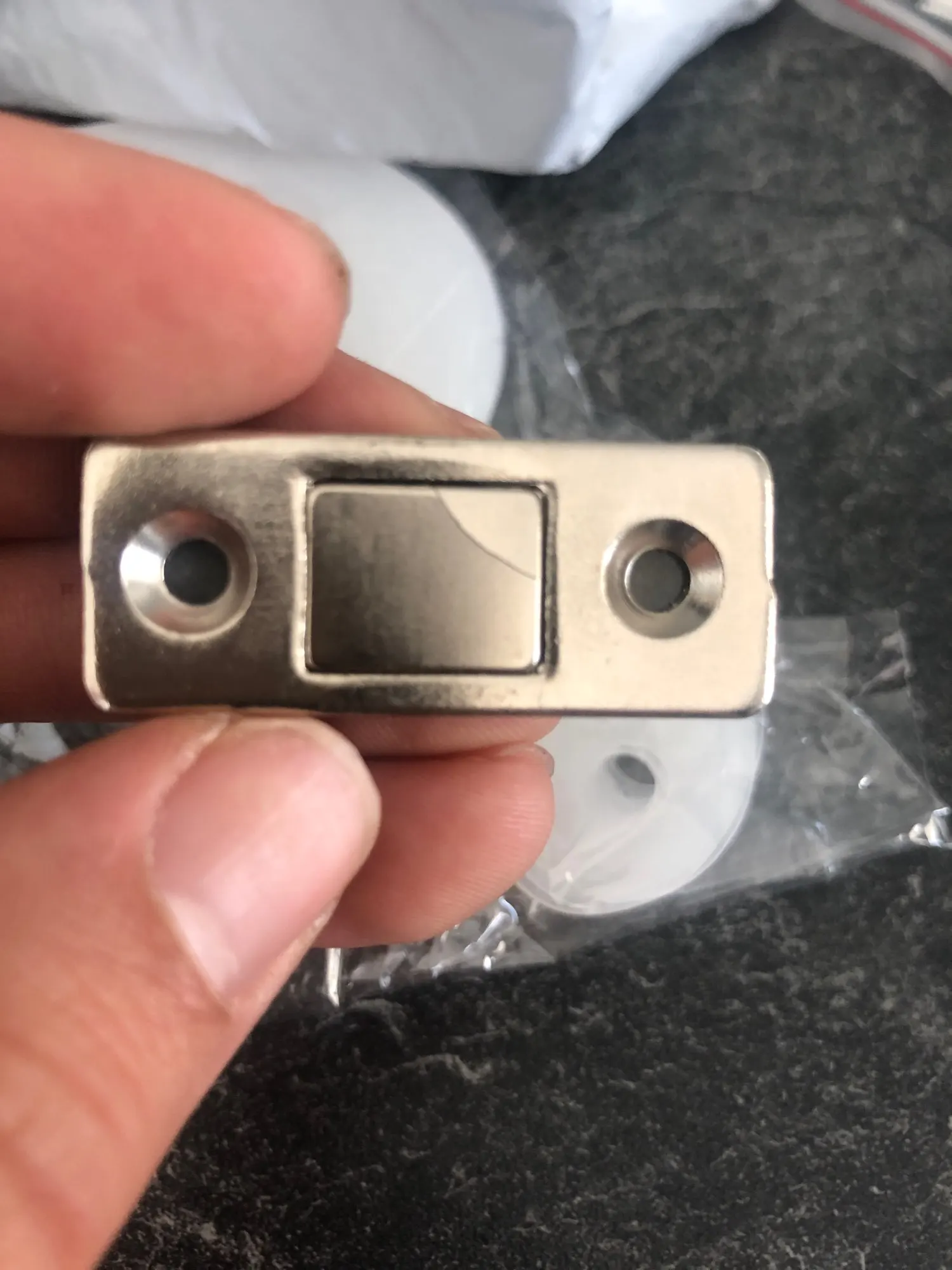 Заказывал для стеклянной дверцы на консоли в катер. Купил 3 шт и установил по всей длине. Магнит реально сильно держит и похоже неодимовый. В комплекте идет двухсторонний скотч для магнита и ответной планки. Очень удобно, сначала приклеил на дверцу, приверил, потом присверлил намертво. Товар качественный